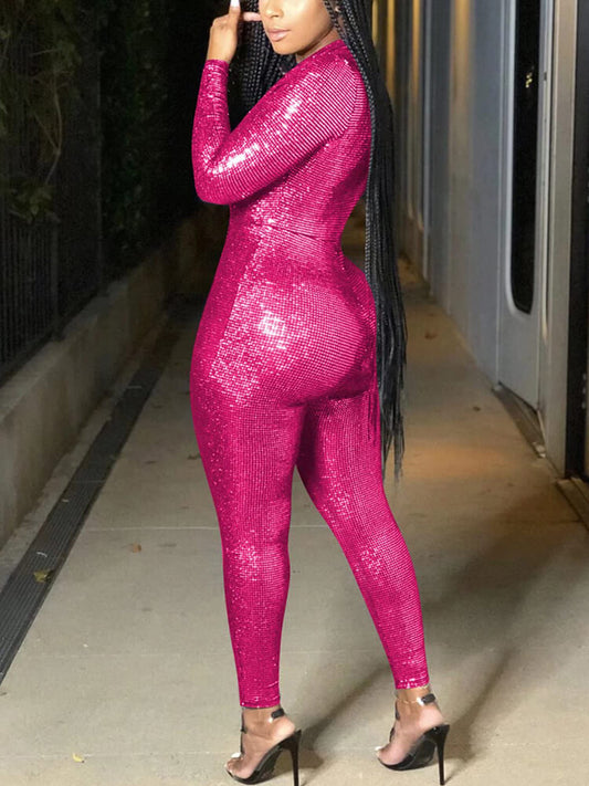 Long Sleeve Hot Drilling Sequins High Split Maxi Dress