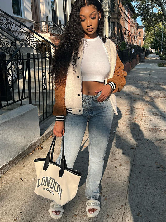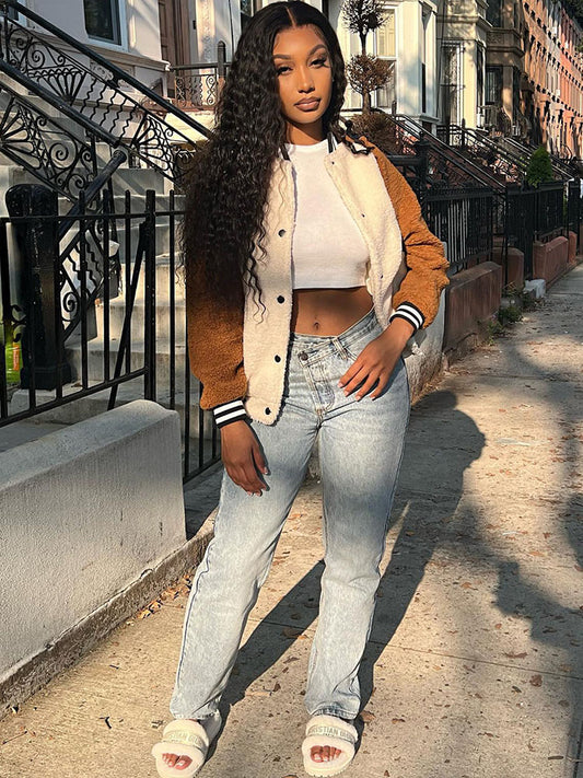 Denim Sleeves Patchwork Knit Color Block Sweater