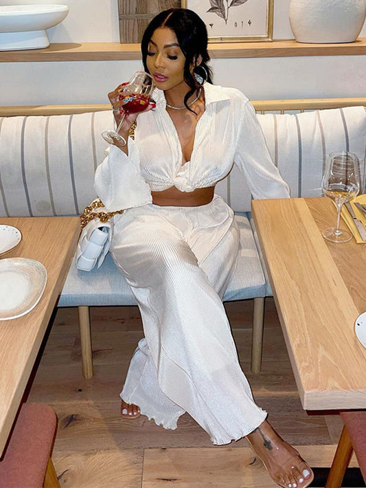 Two Piece Pleated Long Sleeve & Long Pants