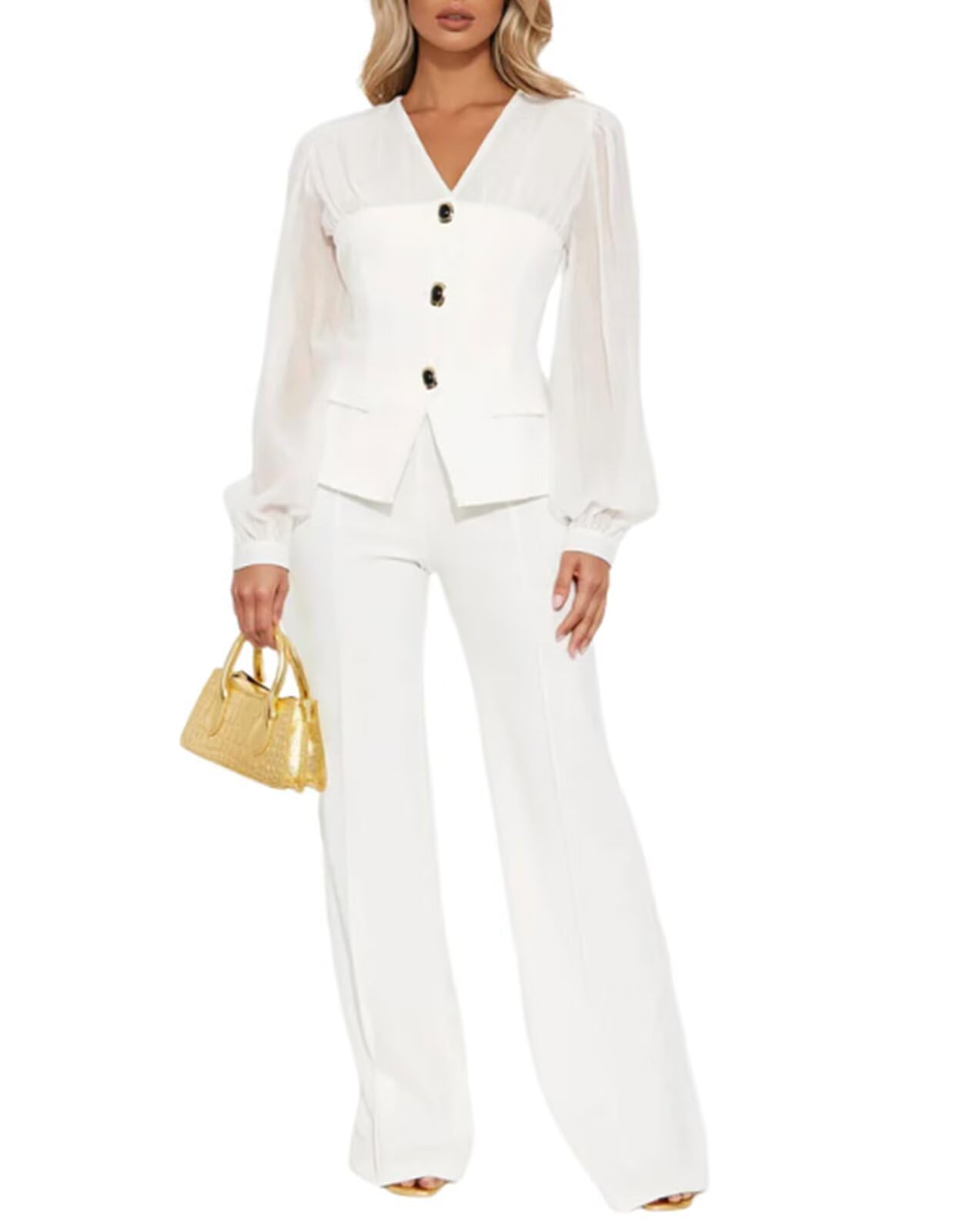 Women 2 Piece Outfits Pant Suits Khaki Large 2