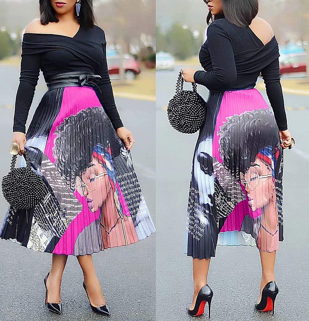 Women's Graffiti Pleated Skirts Rose Red Lady 3X-Large 7