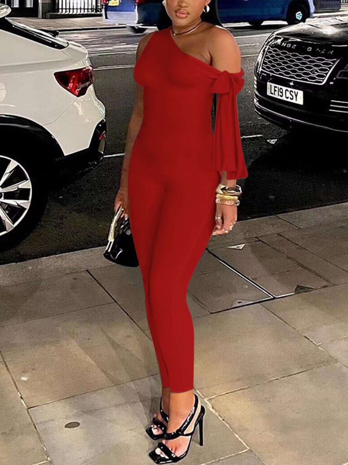 Cute One Shoulder Jumpsuits Red X-Large 3