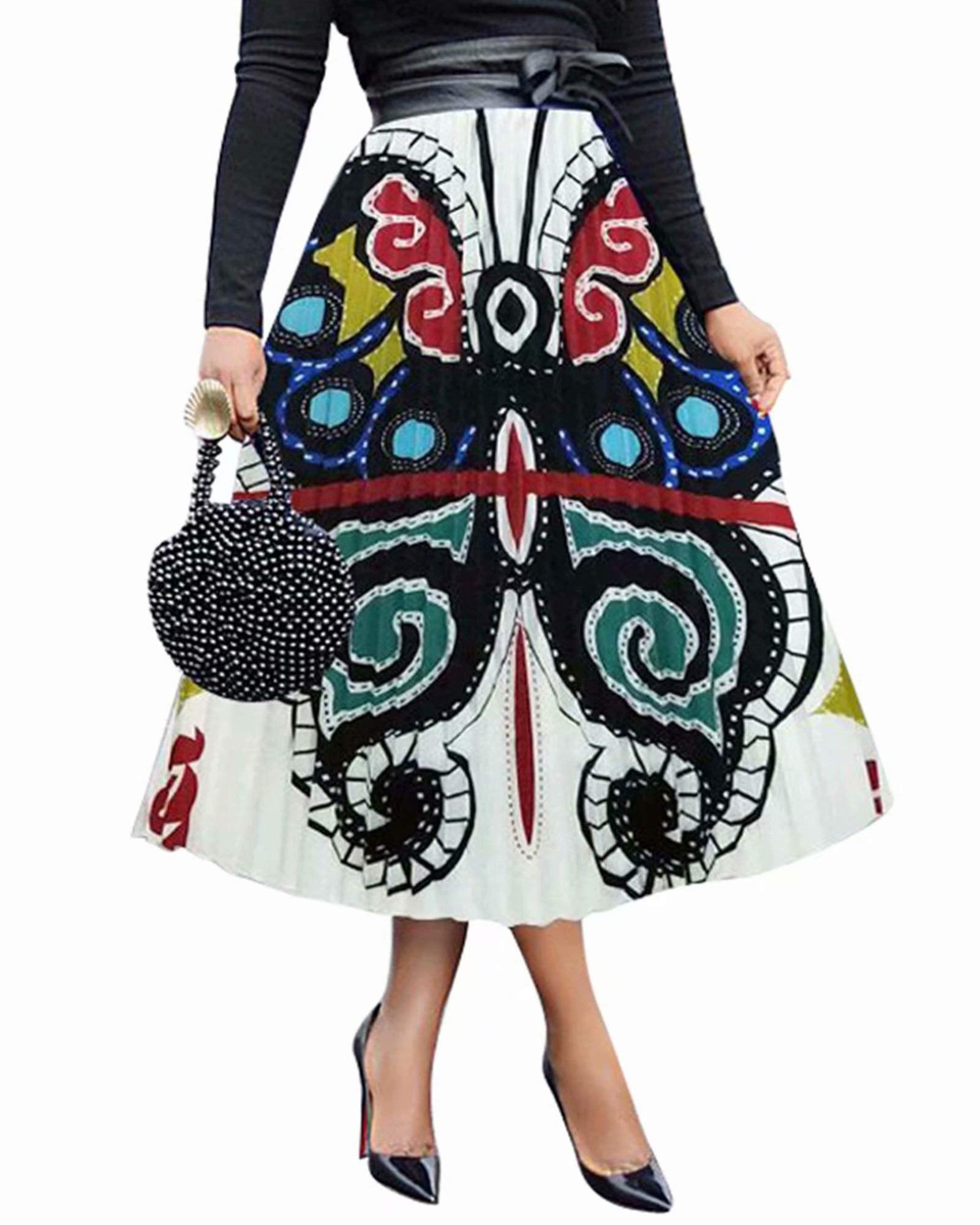 Women's Graffiti Pleated Skirts Butterfly 3X-Large 1