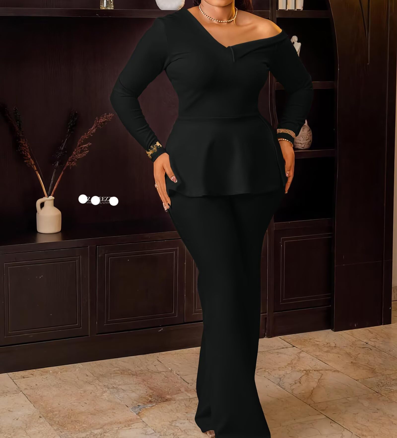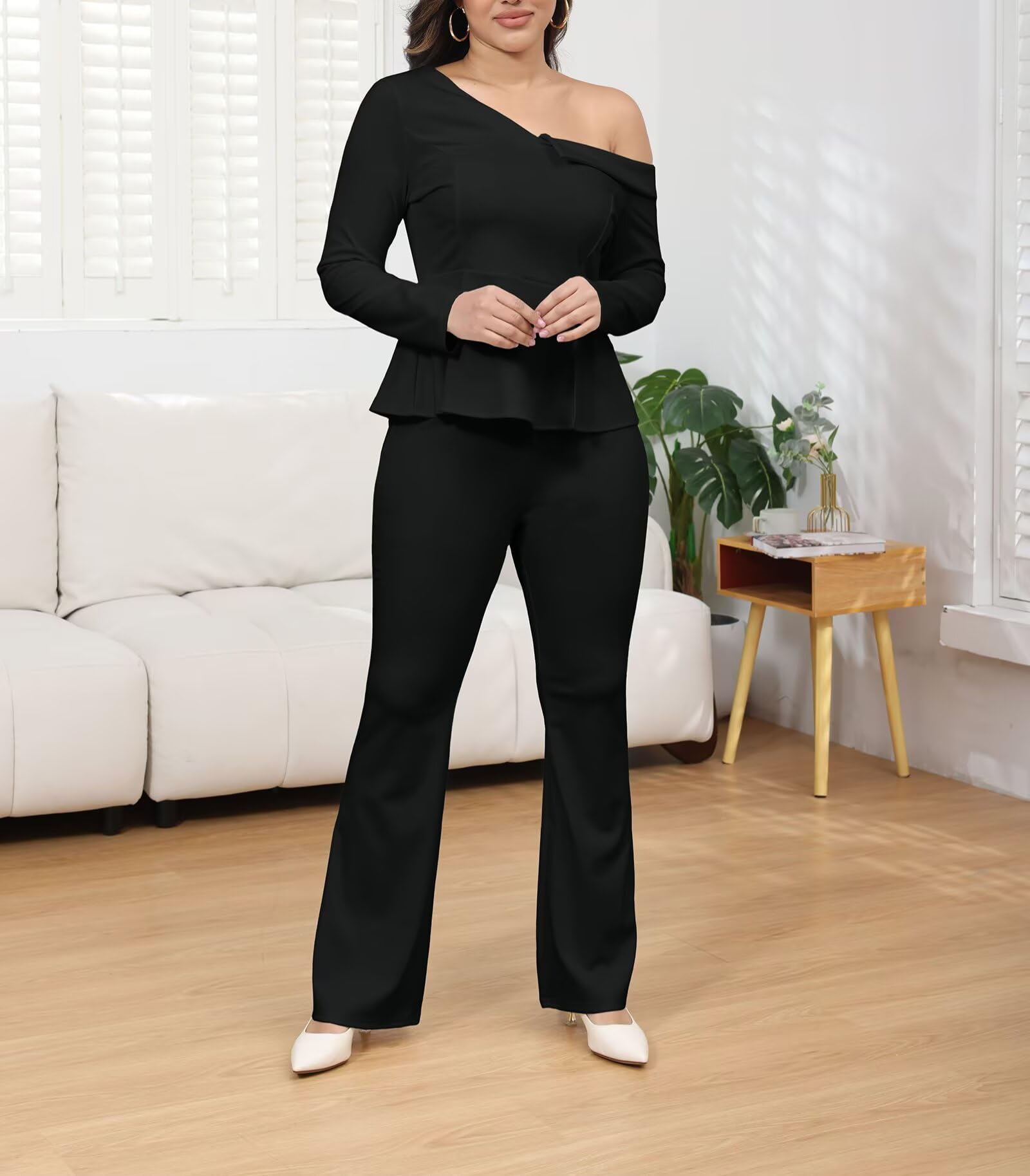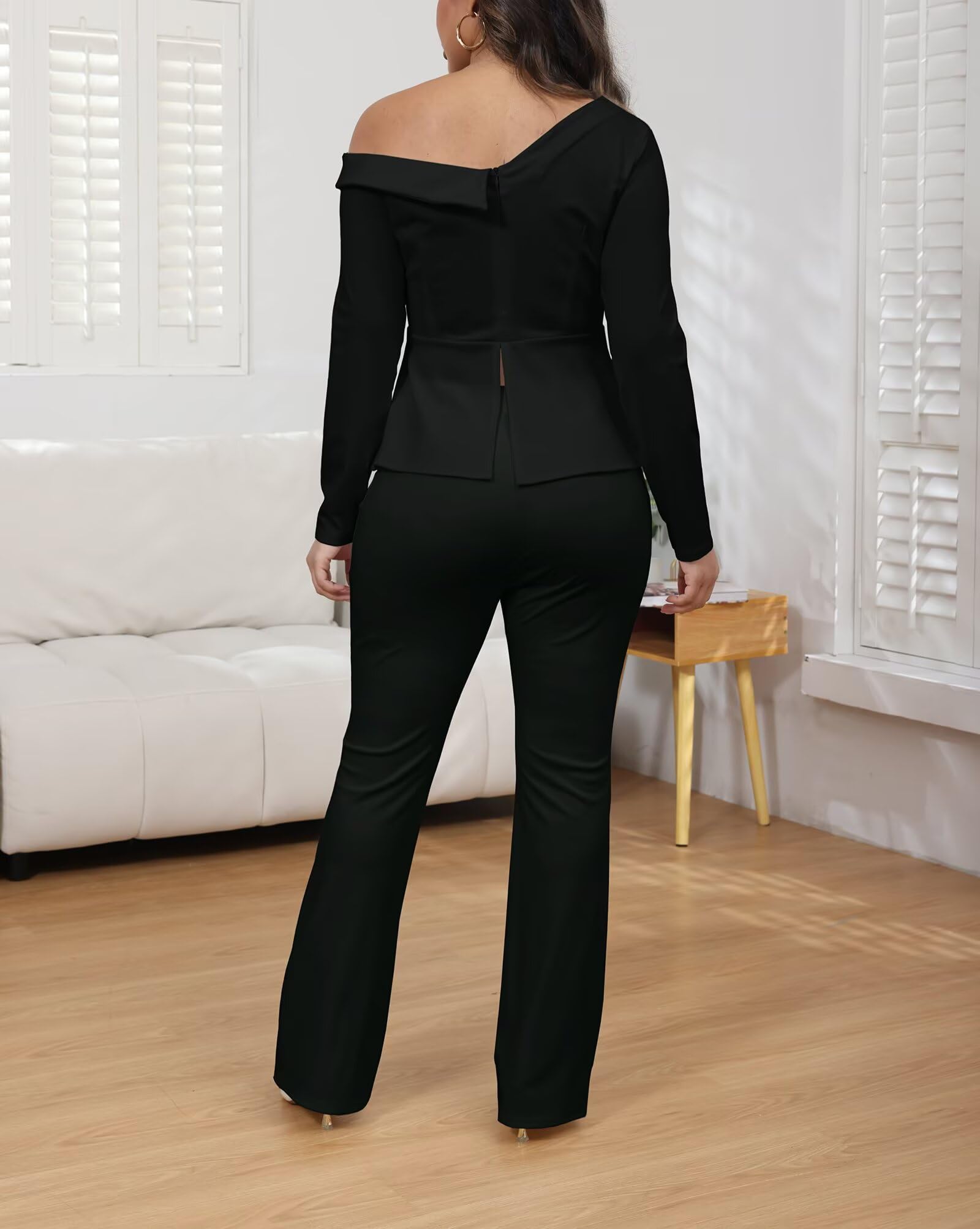 | one shoulder 2 piece pant set | Black | Medium | 4 |