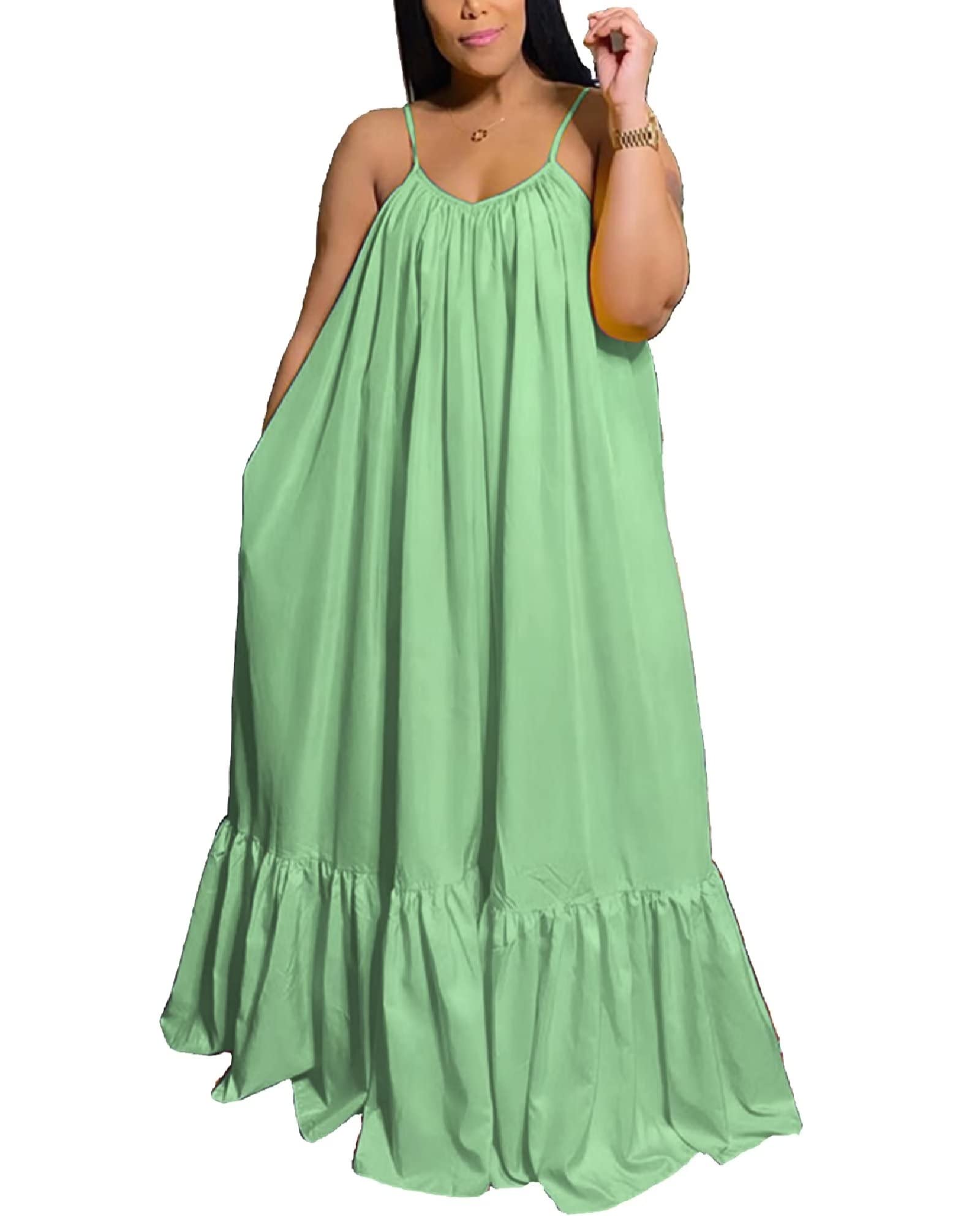 Spaghetti Strap Loose Beach Dress Light Green XX-Large 1
