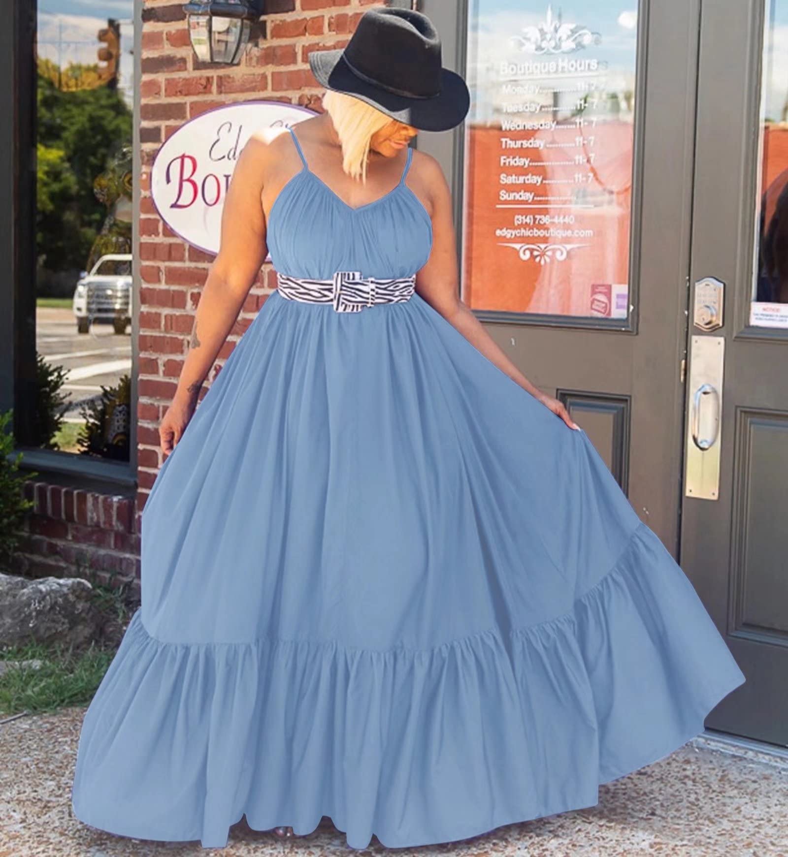 Beach Loose Long Maxi Swing Dress Lake Blue 5X-Large 1