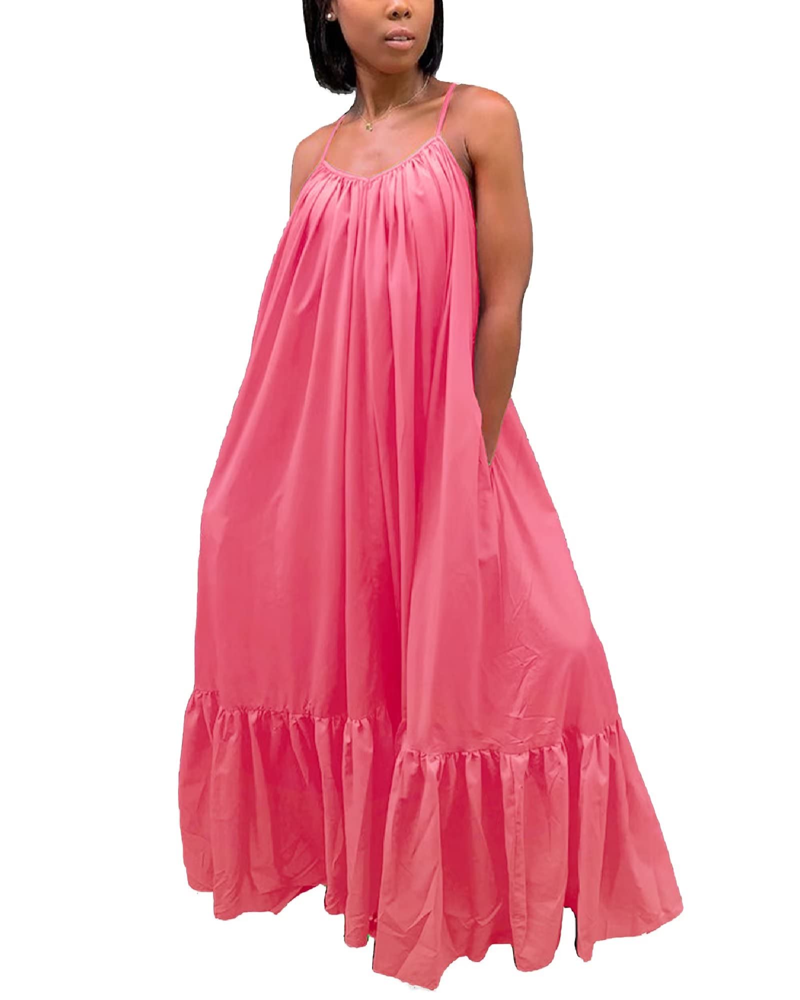 Vacation Oversized Maxi Swing Dress Watermelon Red Large 1