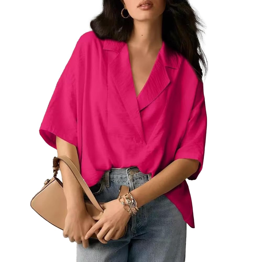 Oversize Short Sleeve Shirts Dark Pink Large 2