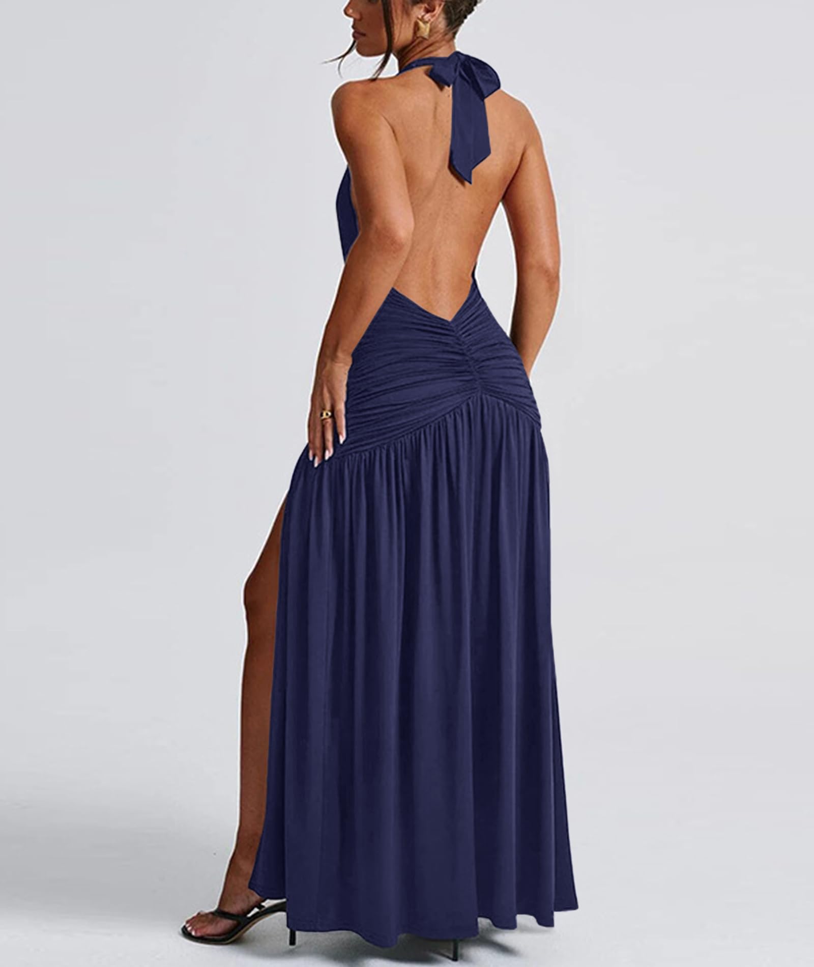 | Sexy Halter Deep V Neck Maxi Dress | Navy | Medium | 2 |