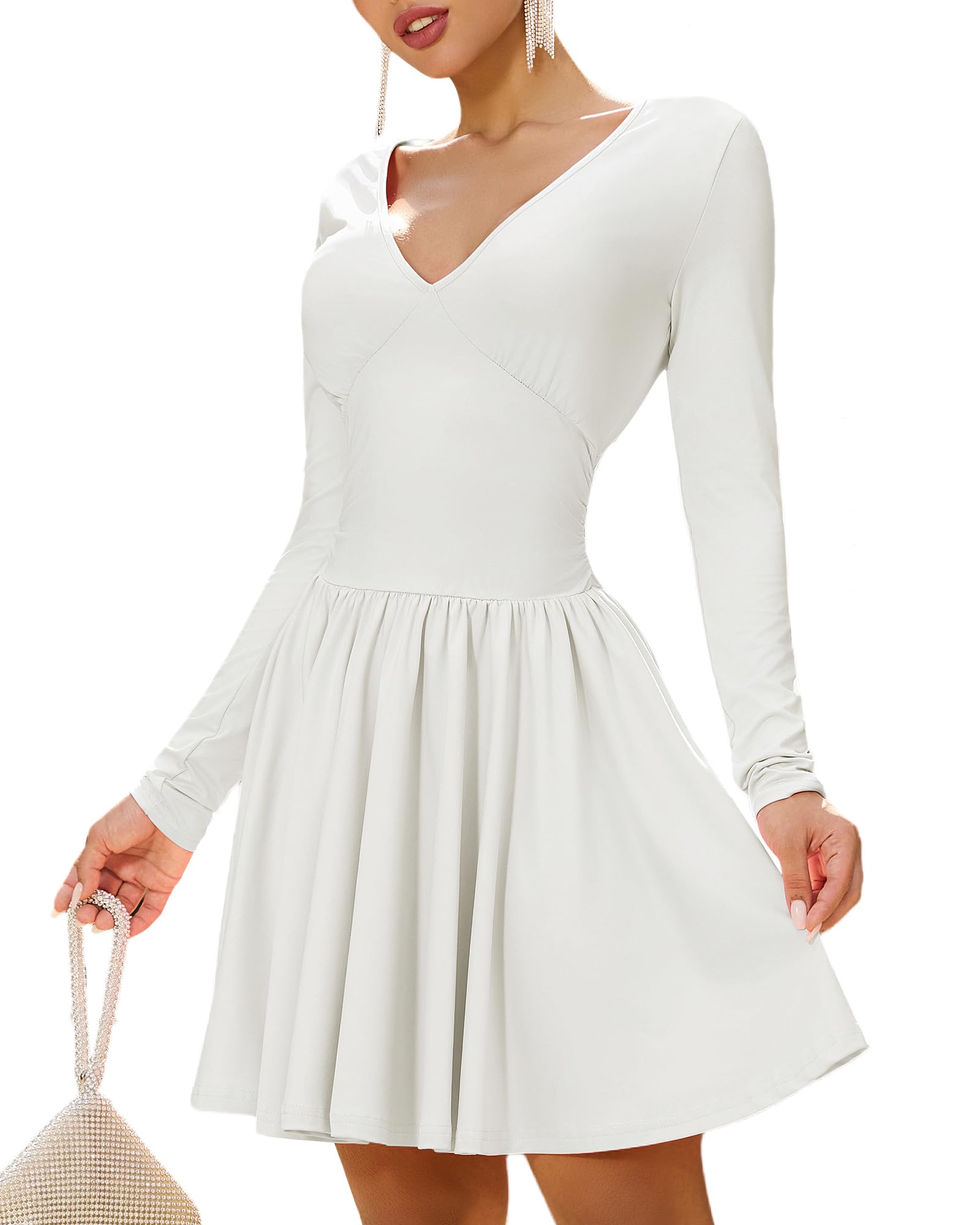 Sexy Long Sleeve V Neck Mini Dress White Medium 1