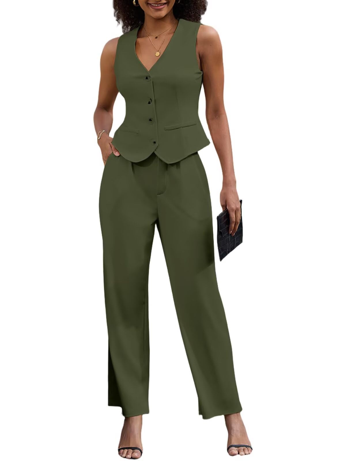 Women's 2 Piece Pant Suits 3011-amy Green Large 1