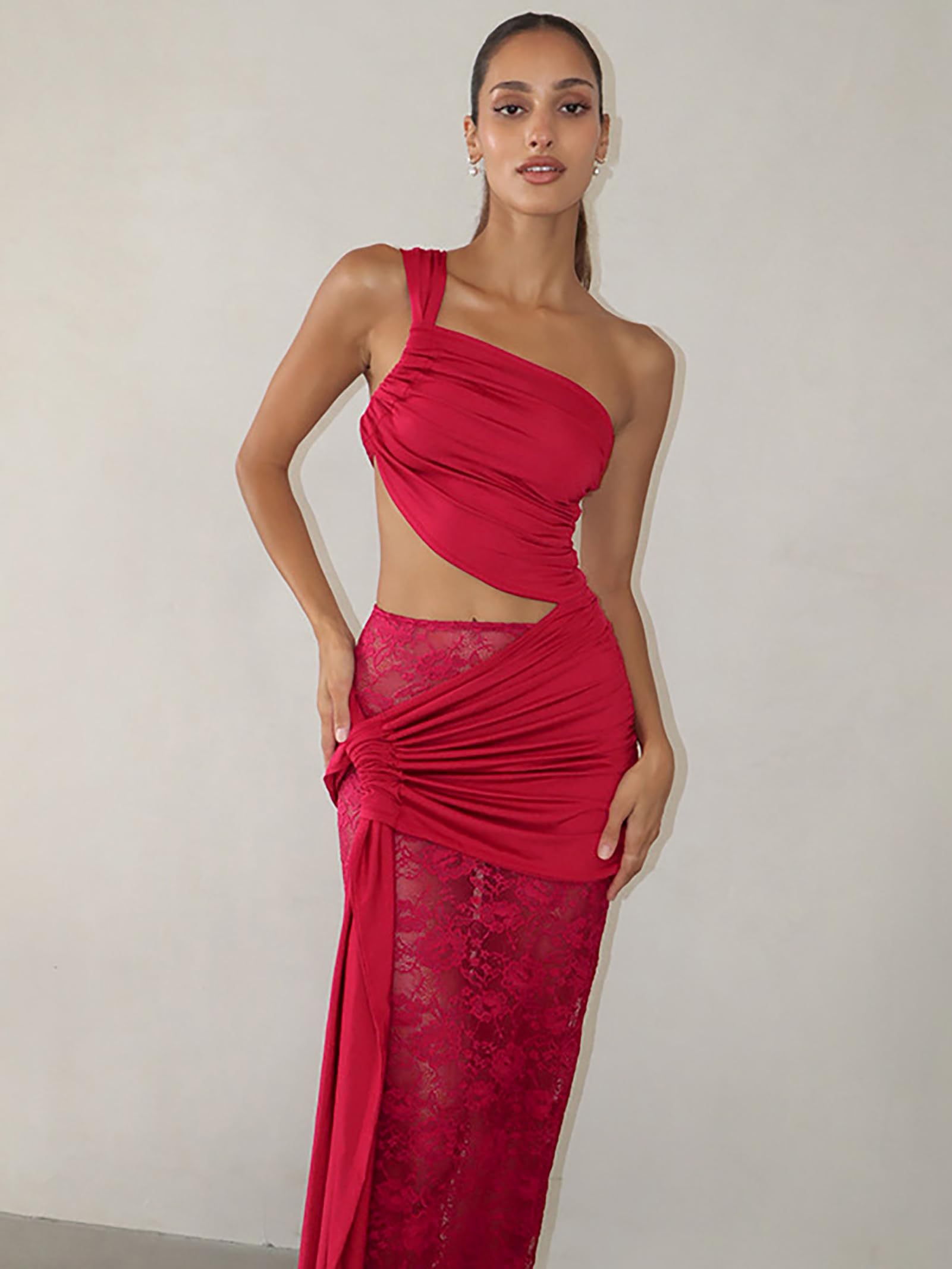 | women sexy 2 piece lace dress set | Red | Large | 5 |