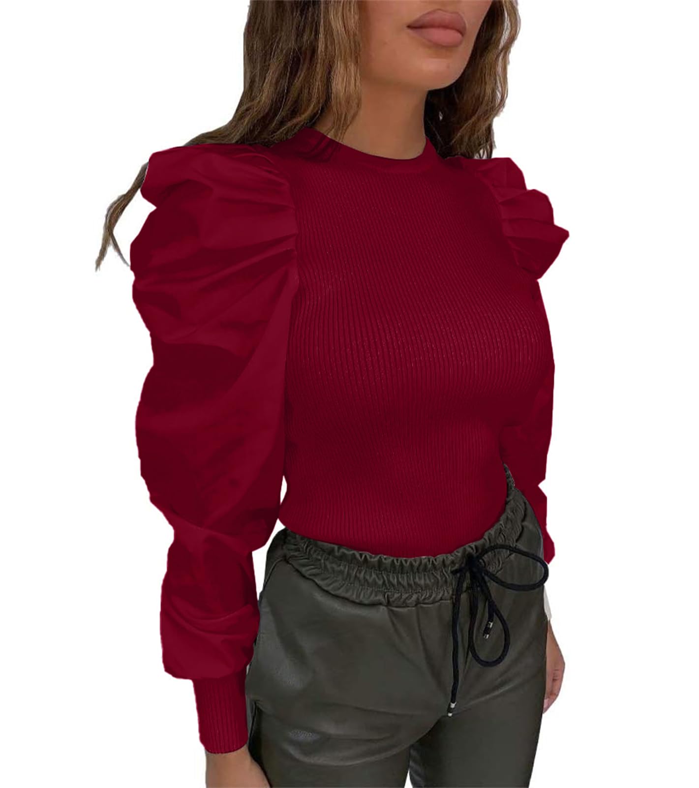 Womens Knit Puff Sleeve Top Wine XX-Large 8