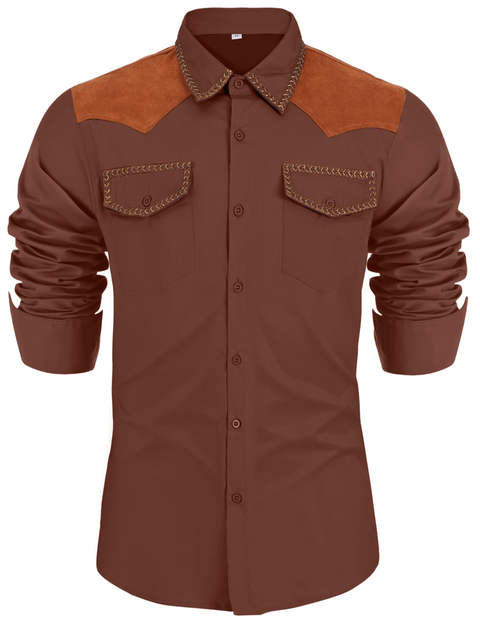 Men's Western Cowboy Shirt Coffee X-Large 4