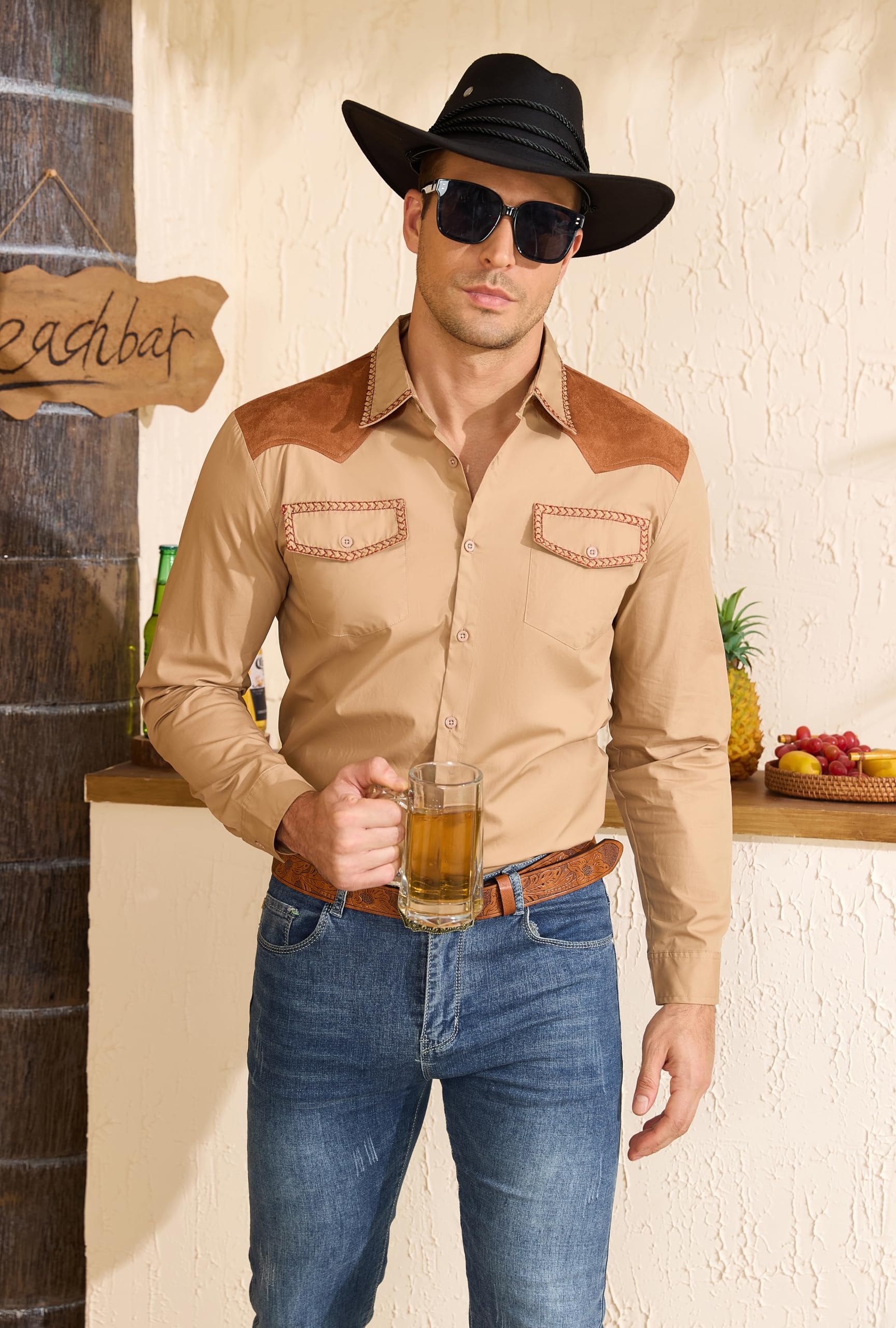 Men's Western Cowboy Shirt Khaki X-Large 3