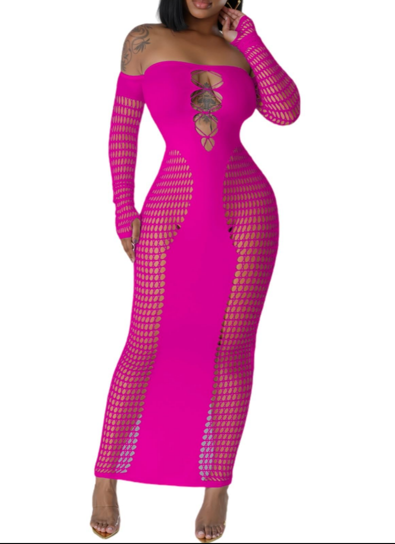 See-Through Fishnet Maxi Dress Hotpink Small-Large 7
