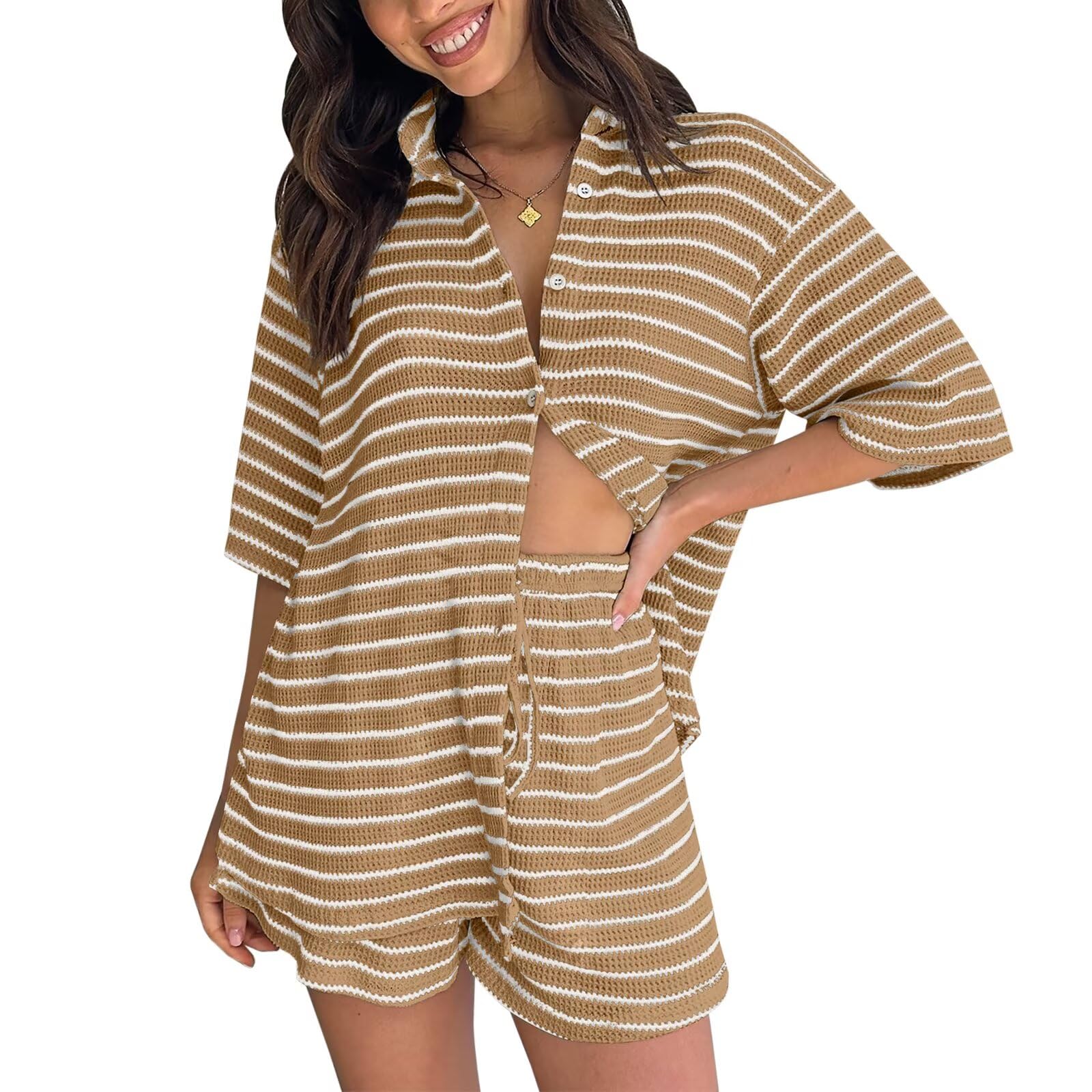 Womens Striped 2 Piece Sets Casual Khaki Small 3