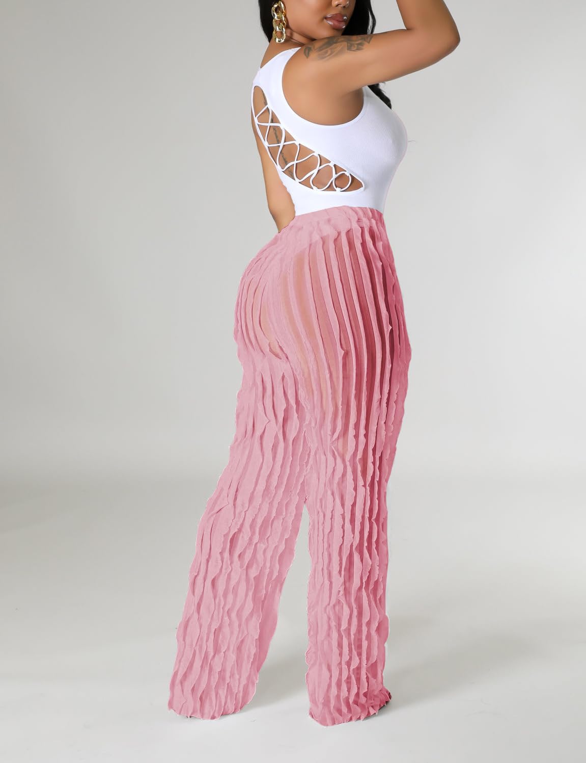 | ruffle wide leg pants | Pink | Medium | 3 |
