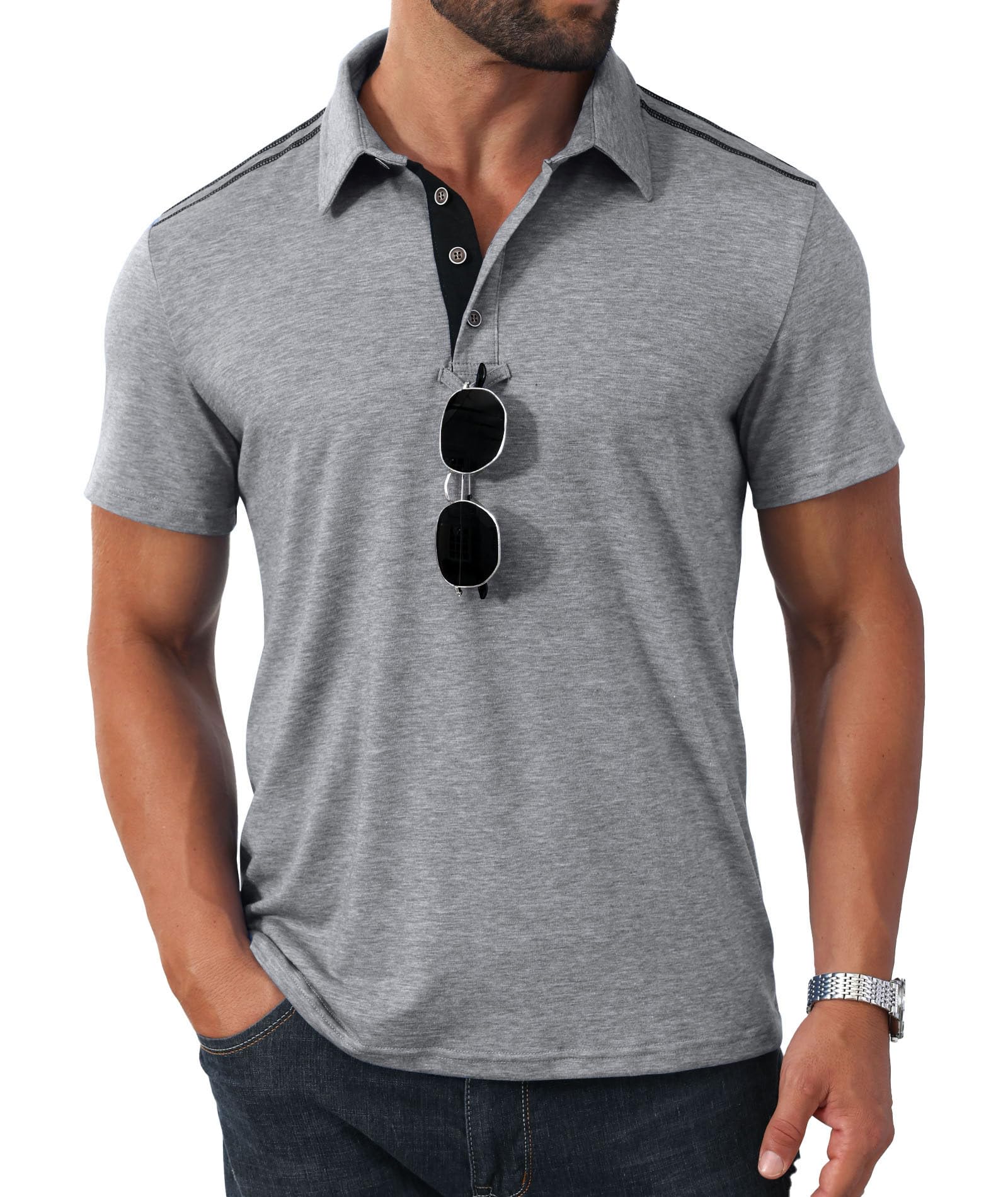 | mens polo short sleeve | Grey | Medium | 5 |