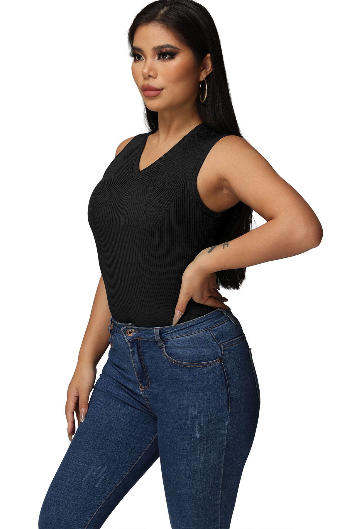 Summer Tops for Women Ribbed Sweate 02-black X-Large 19