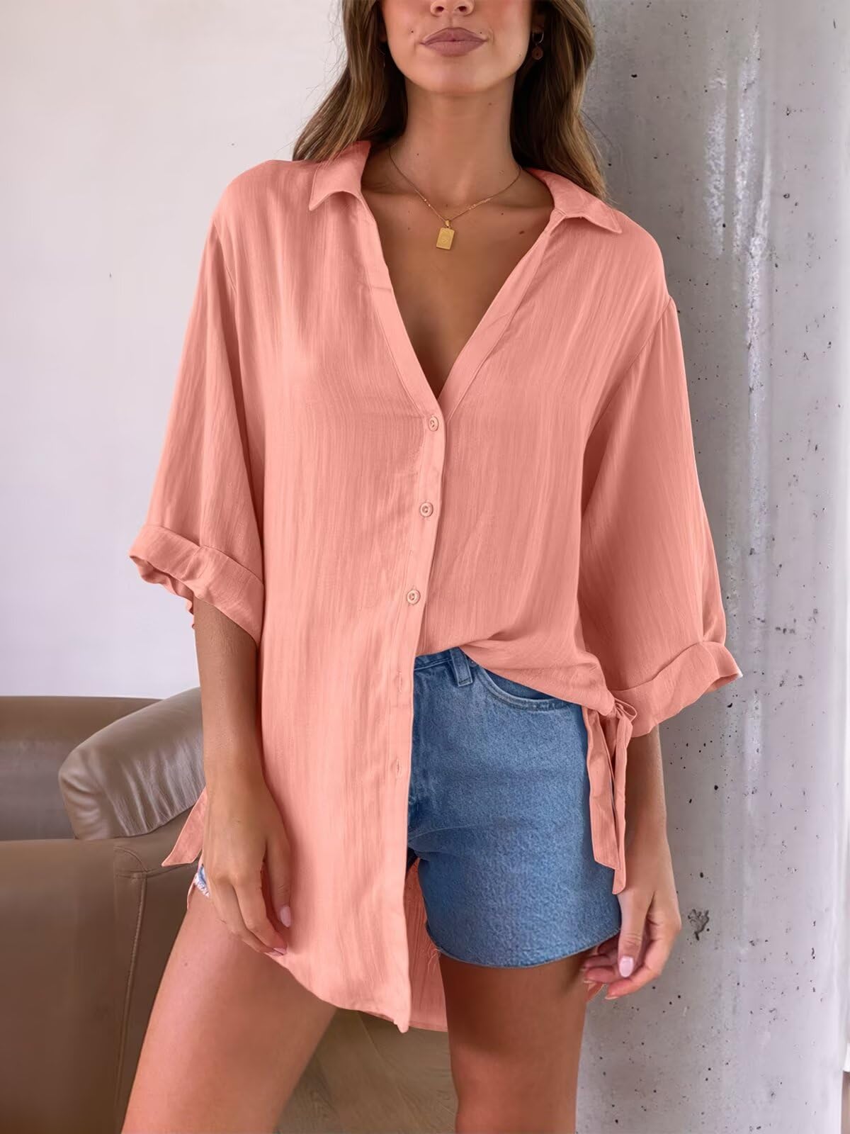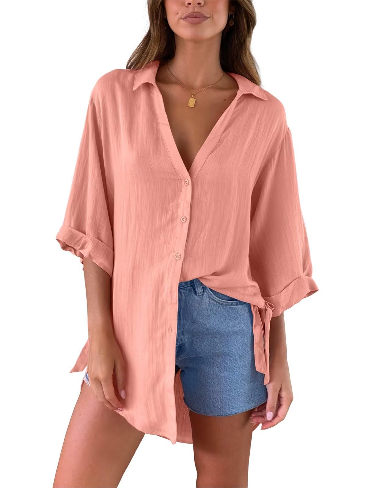 Womens Oversized Button Down Shirts Pink X-Large 3