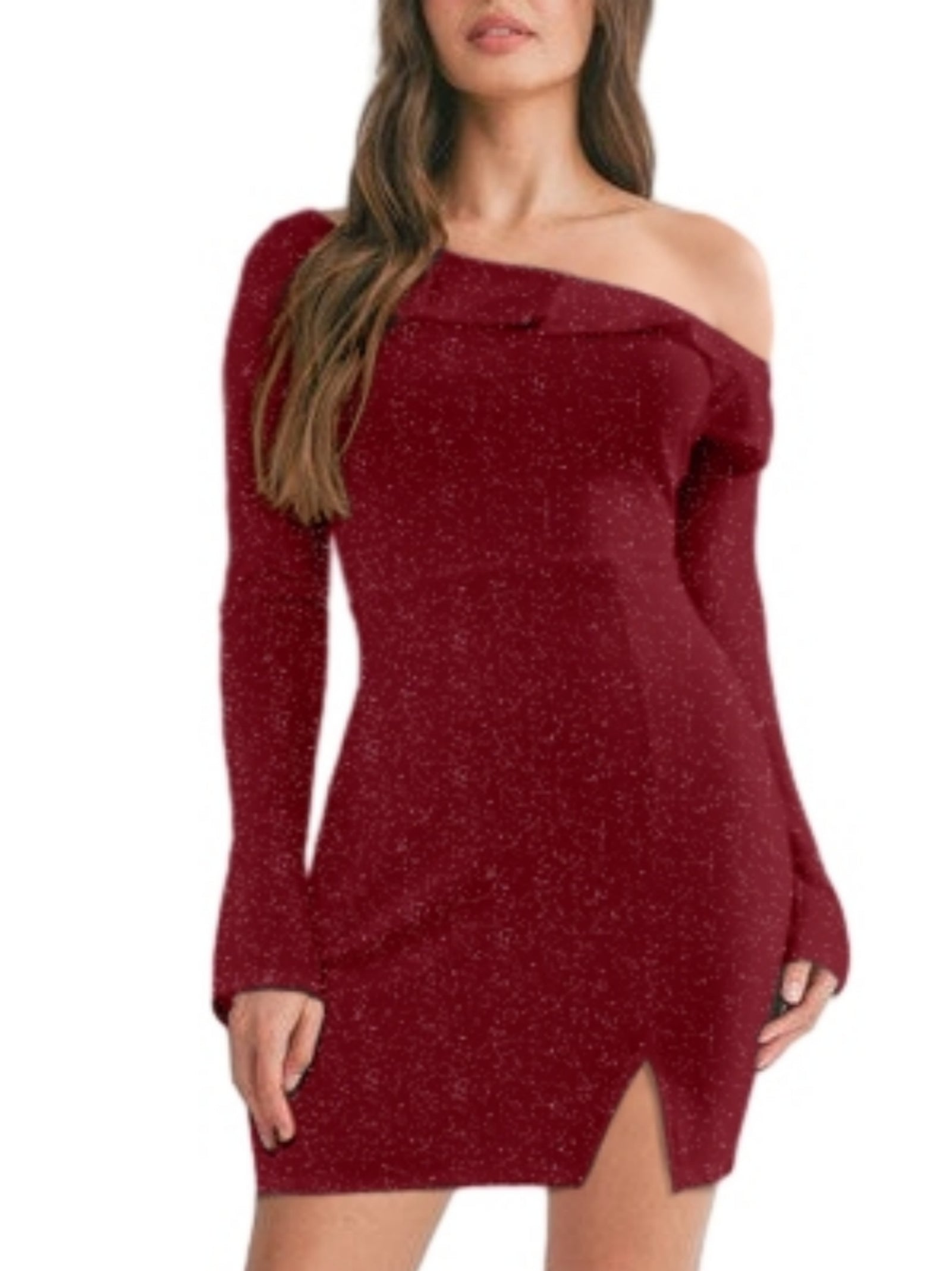 Off Shoulder Cocktail Dress Wine Rred X-Large 2