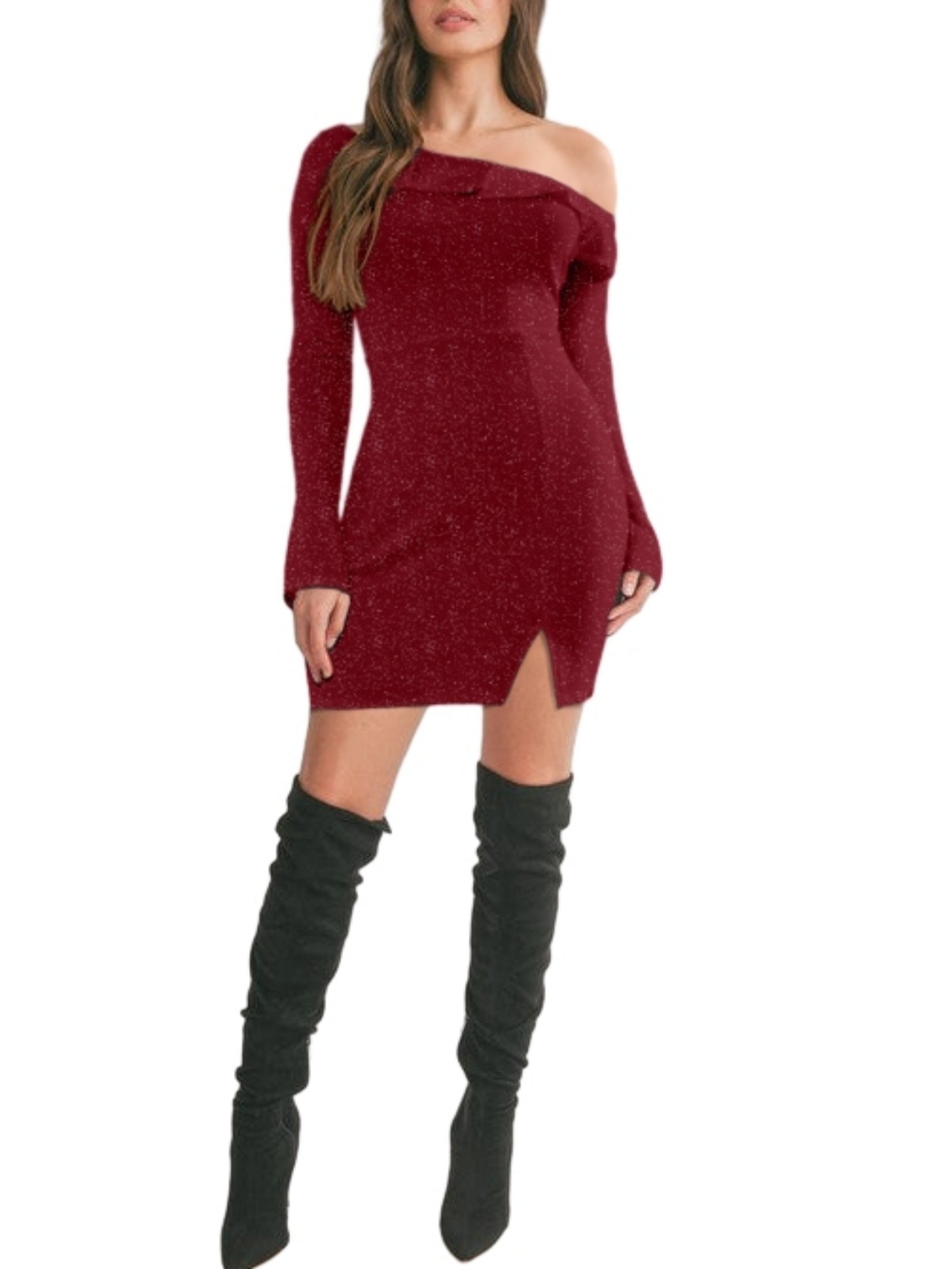 Off Shoulder Cocktail Dress Wine Rred Small 2