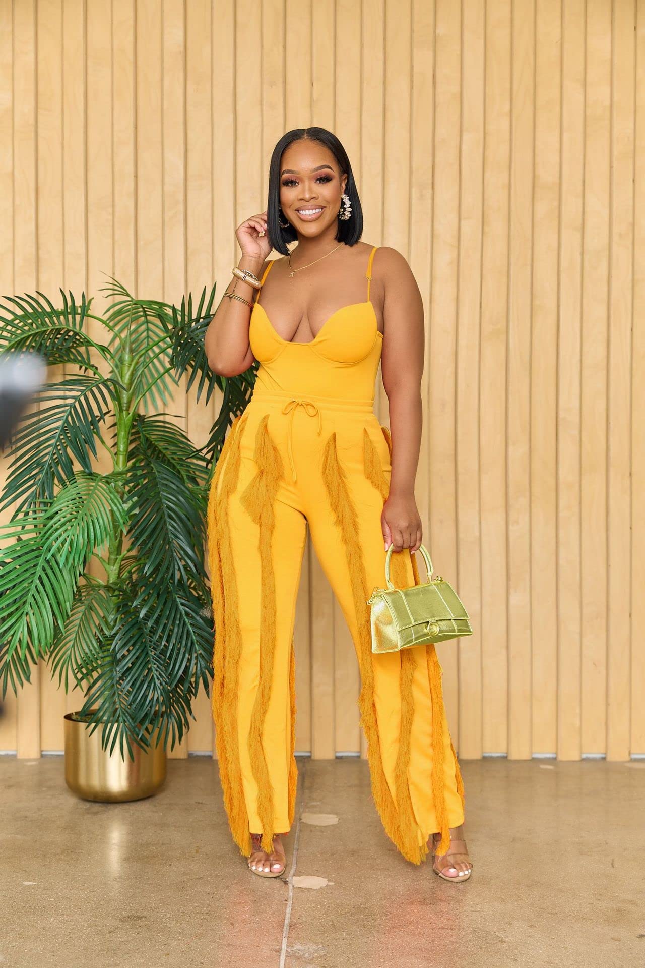 Fringe Tassel Clubwear Set Yellow Medium 1