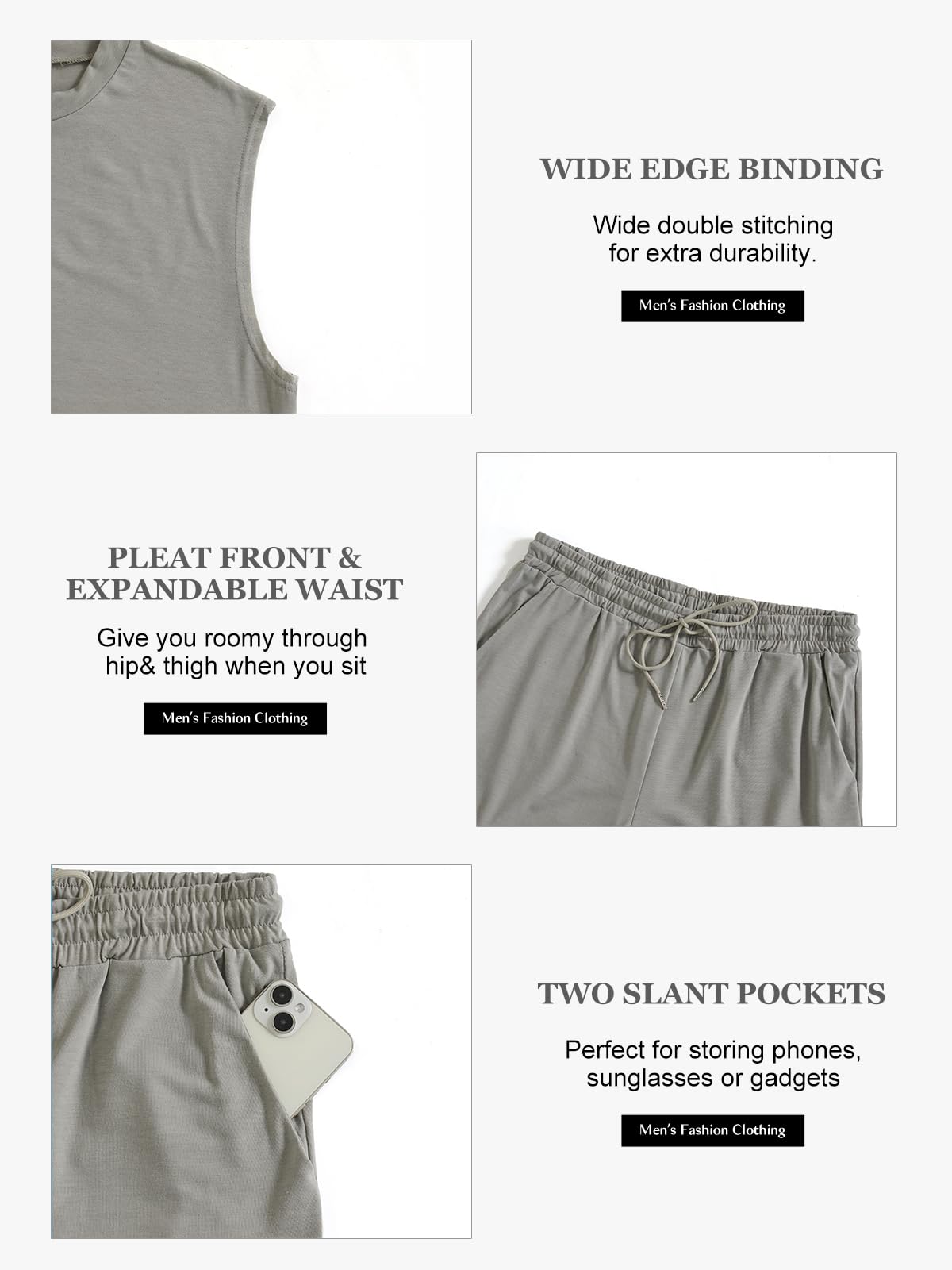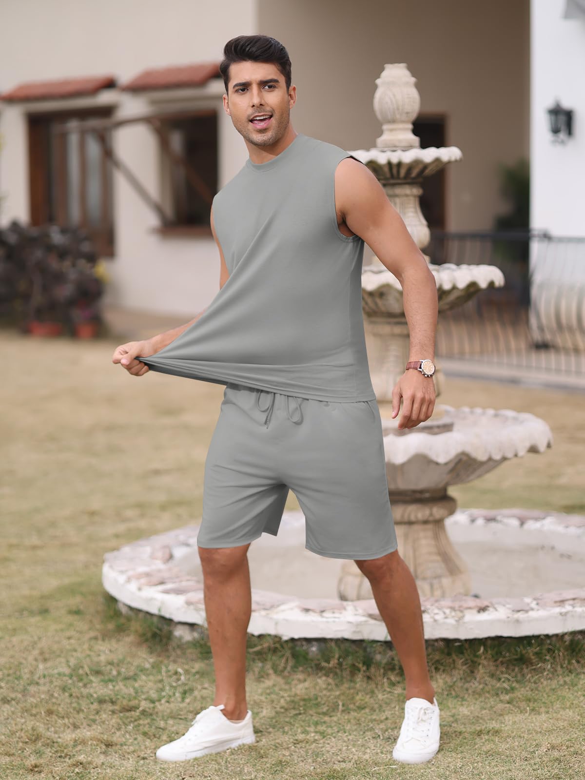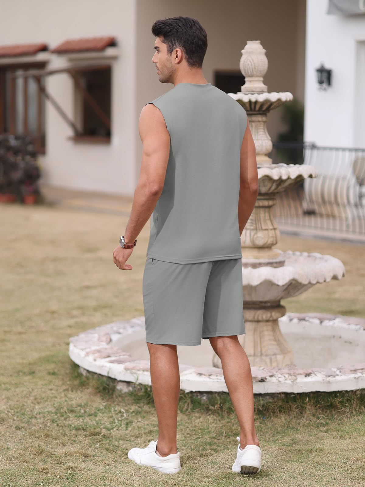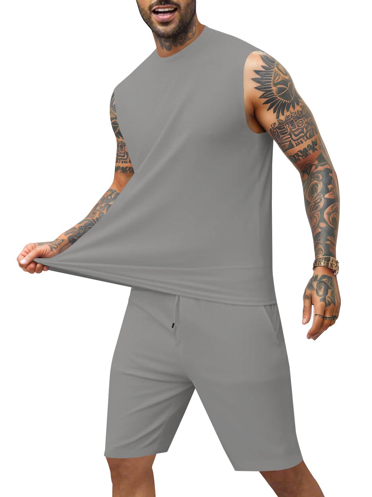 | Men's Sleeveless 2 Pieces Outfits | Grey | X-Large | 6 |