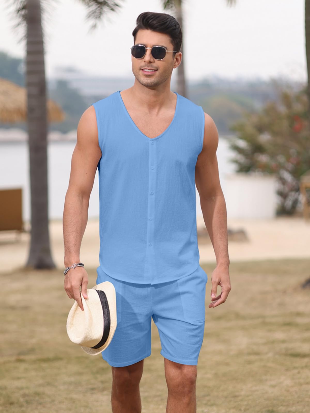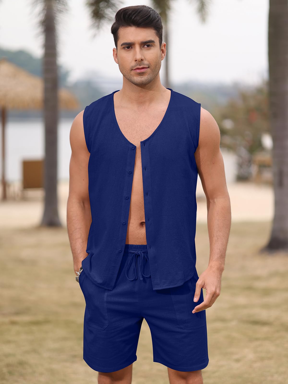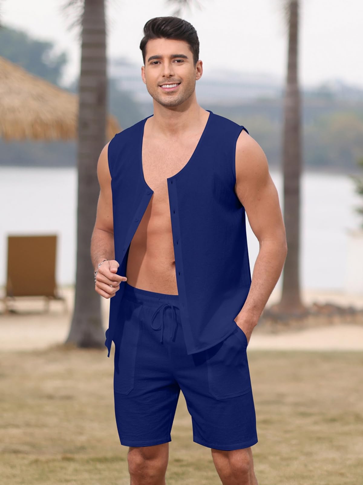 | Men's Sleeveless 2 Pieces Outfits | Blue | Medium | 7 |