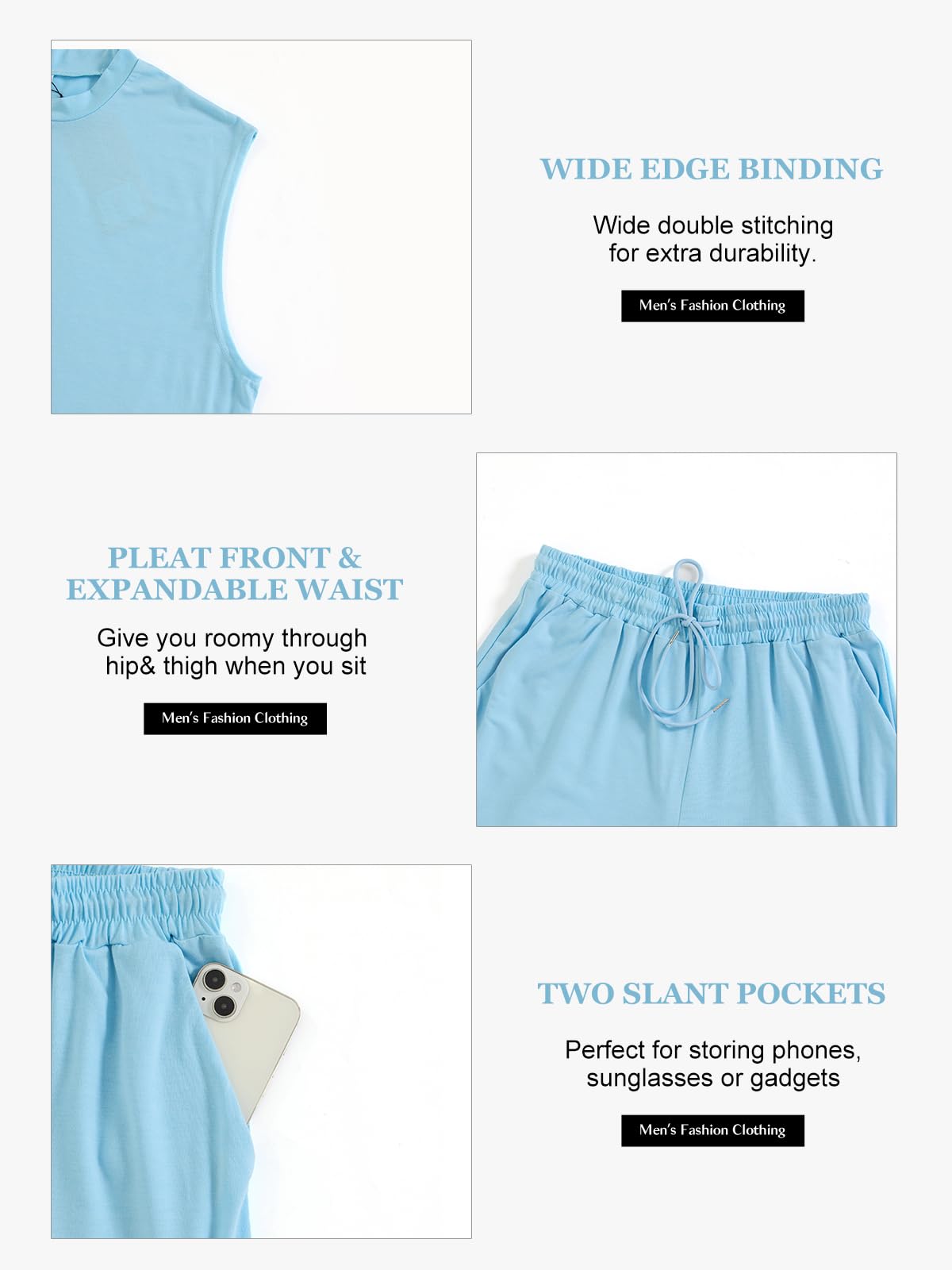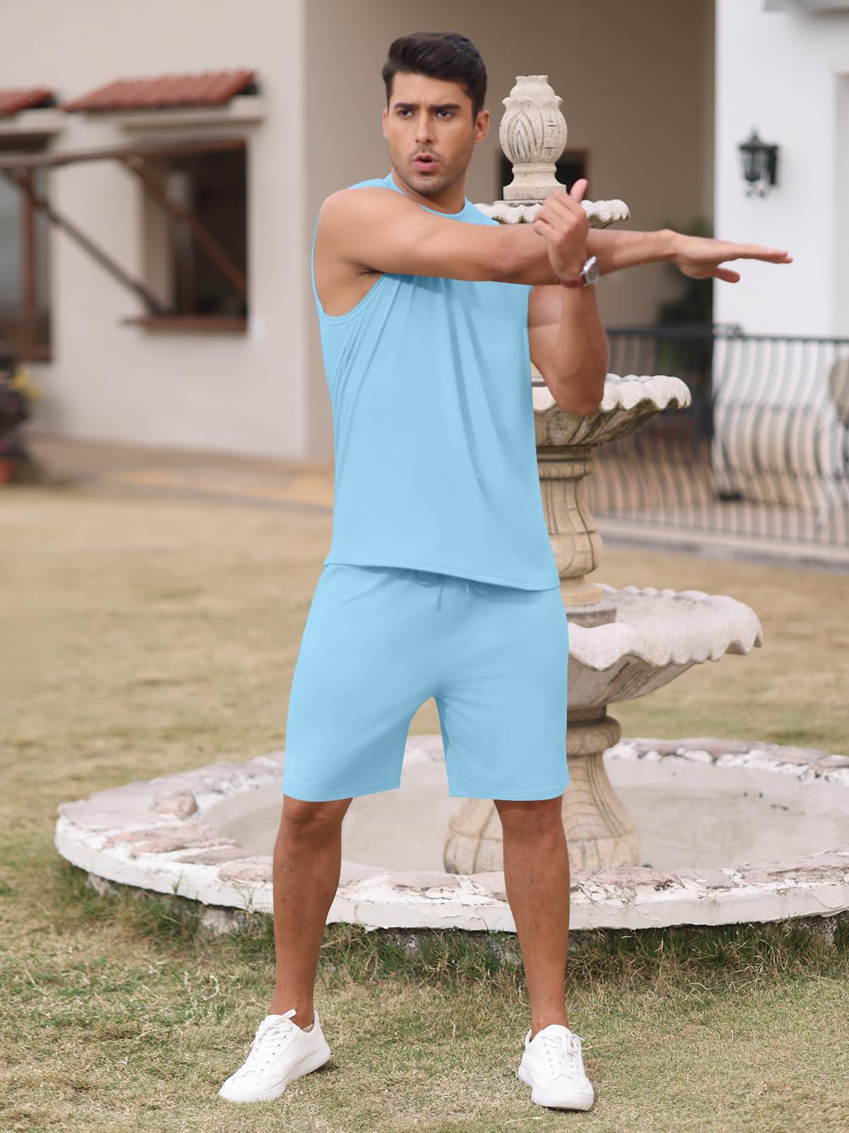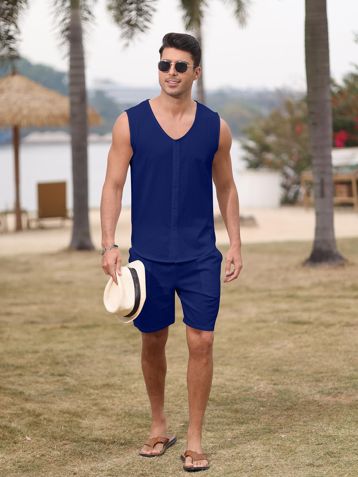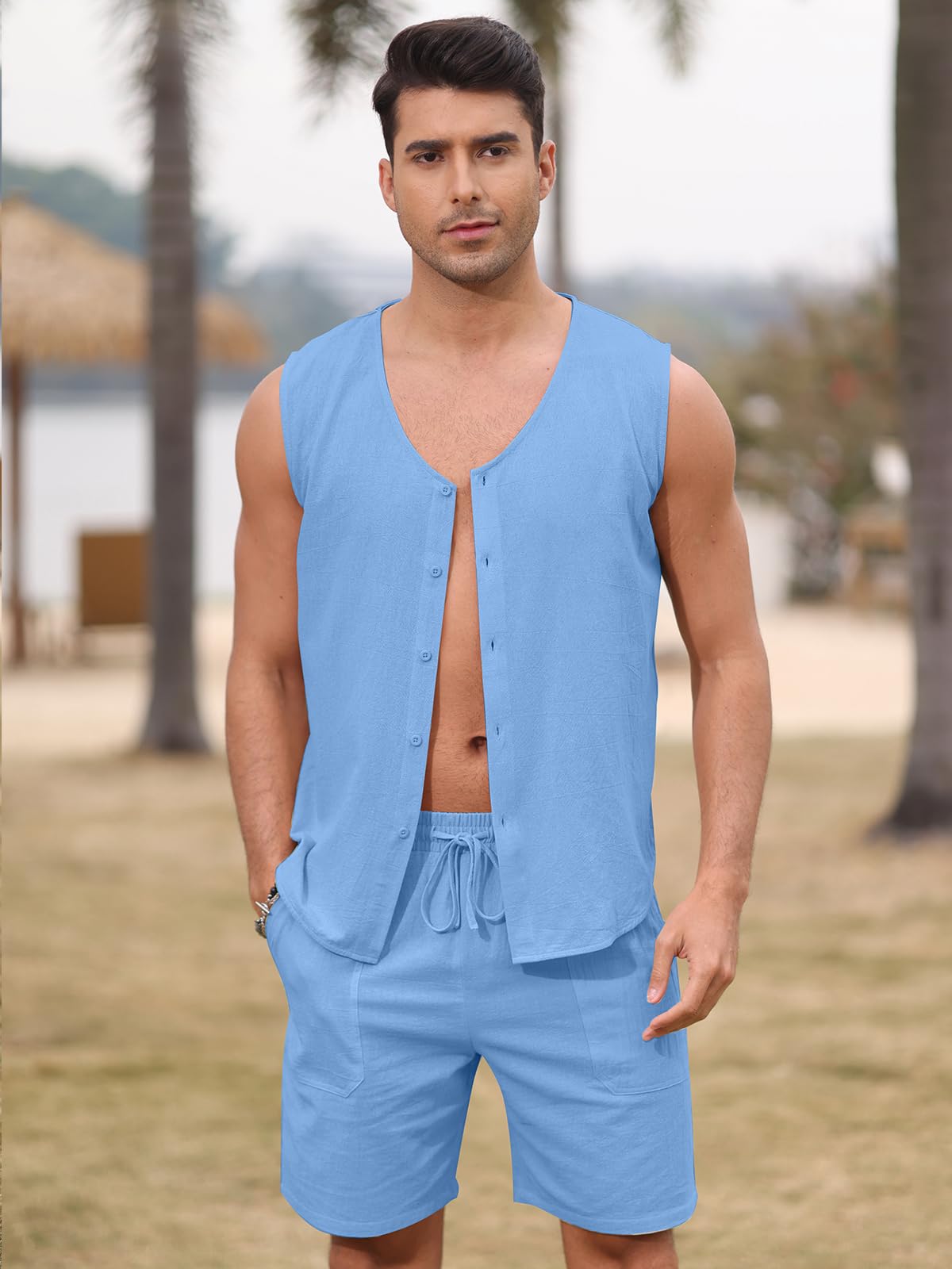 | Men's Sleeveless 2 Pieces Outfits | Blue | Medium | 7 |