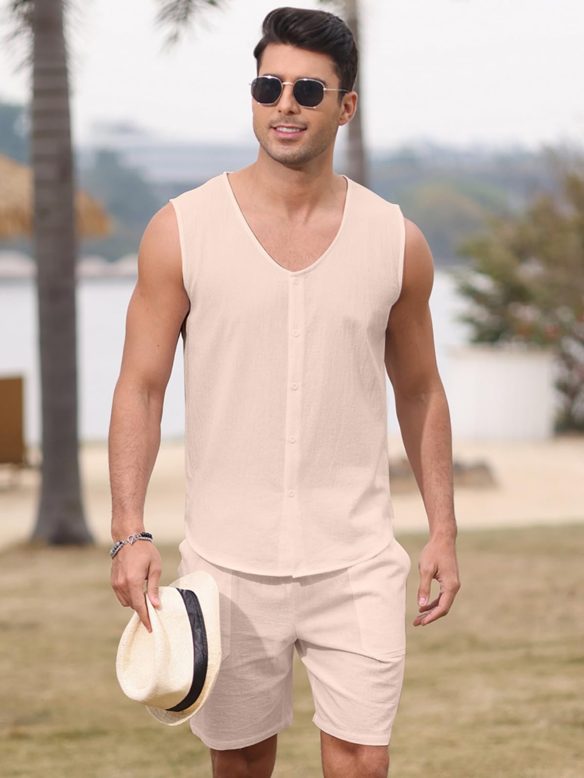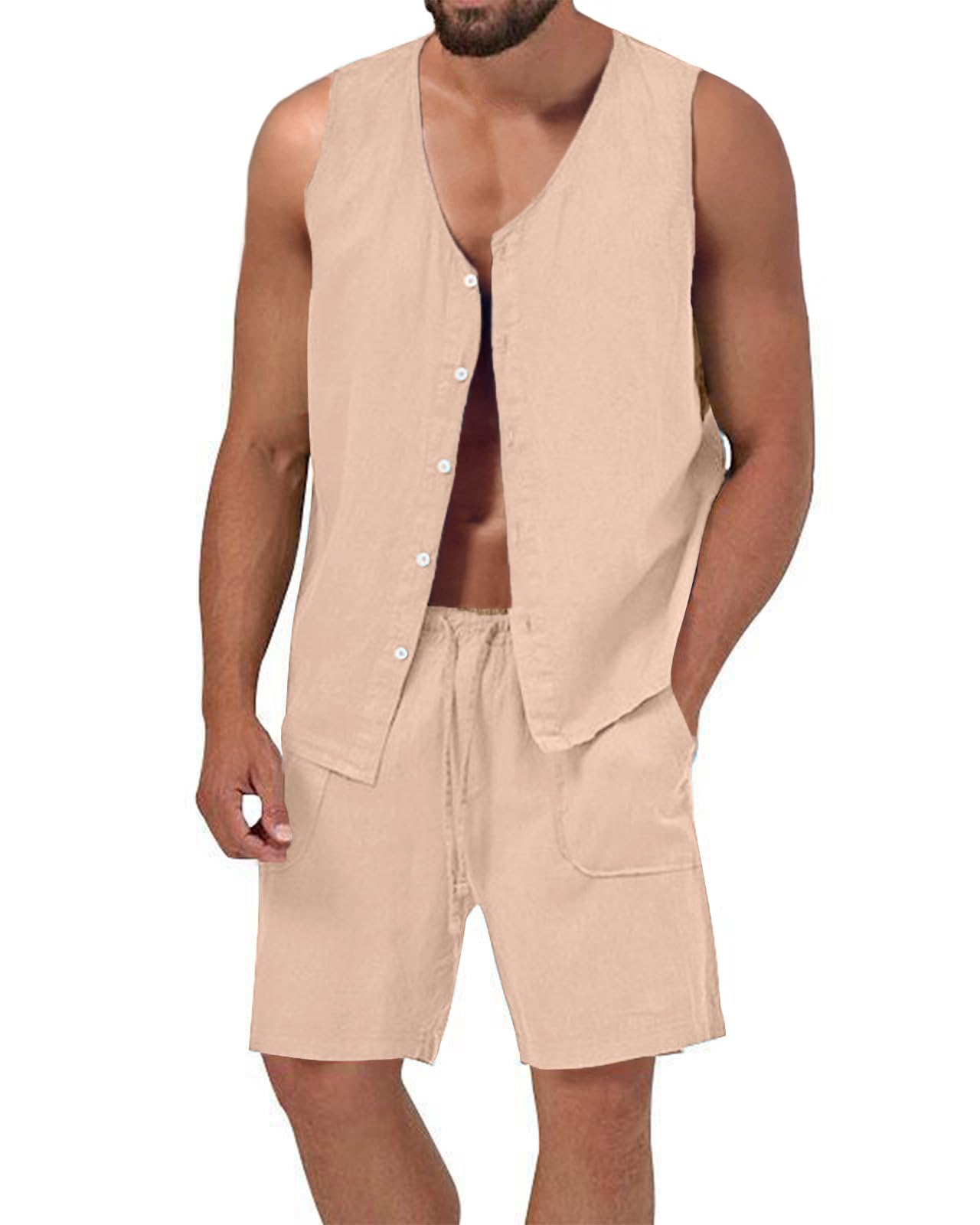 | Men's Sleeveless 2 Pieces Outfits | Khaki | Large | 2 |