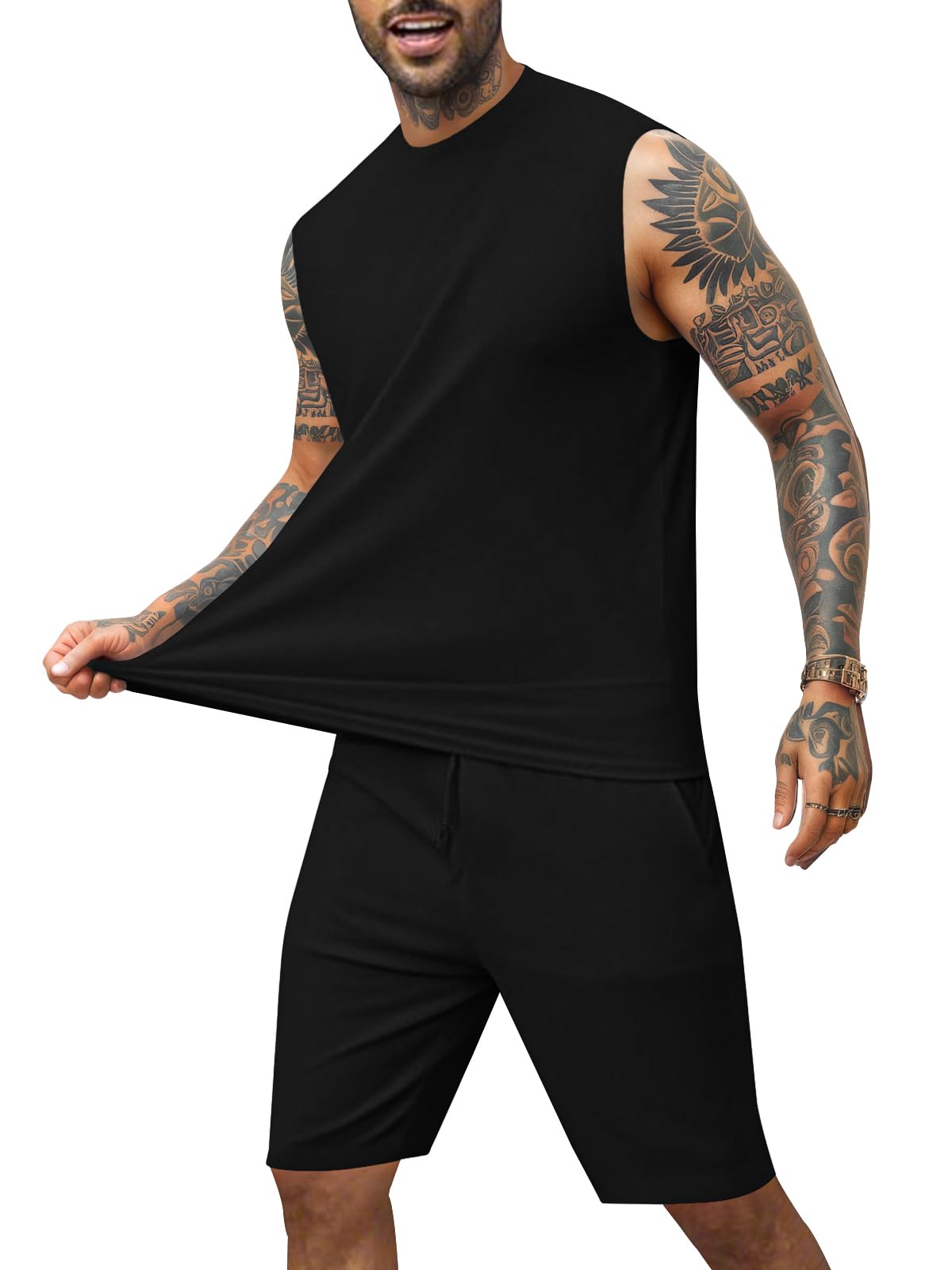 | Men's Sleeveless 2 Pieces Outfits | Black | XX-Large | 1 |