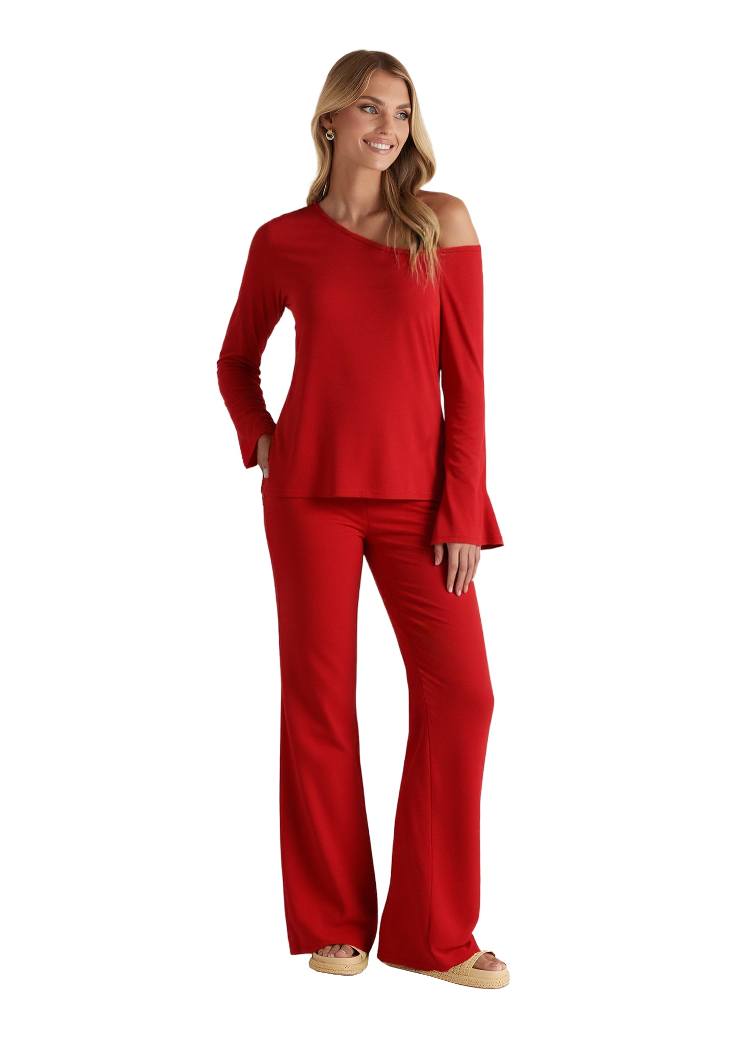 Womens long sleeve 2 piece set Red Medium 15