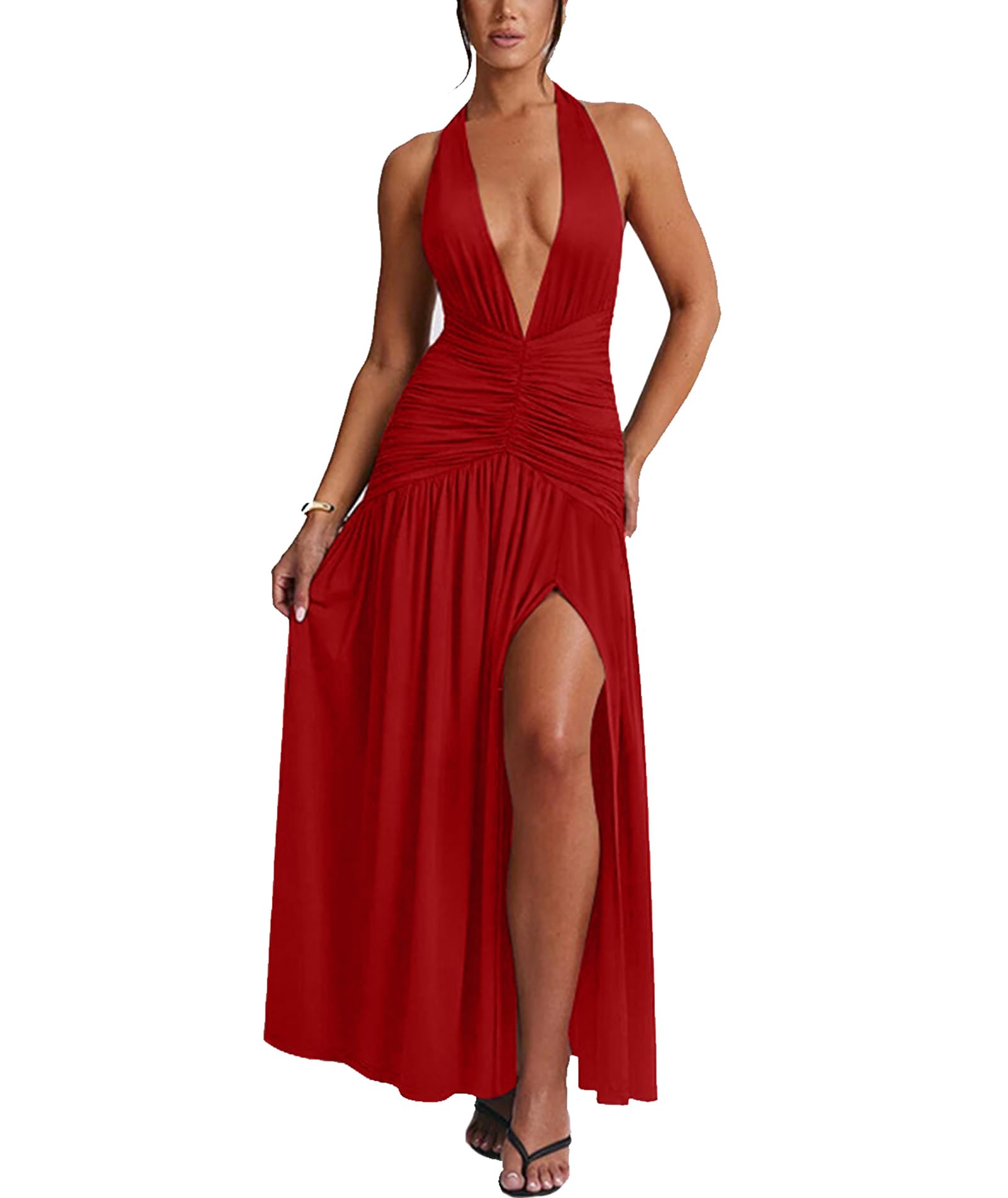 | Sexy Halter Deep V Neck Maxi Dress | Red | Small | 4 |