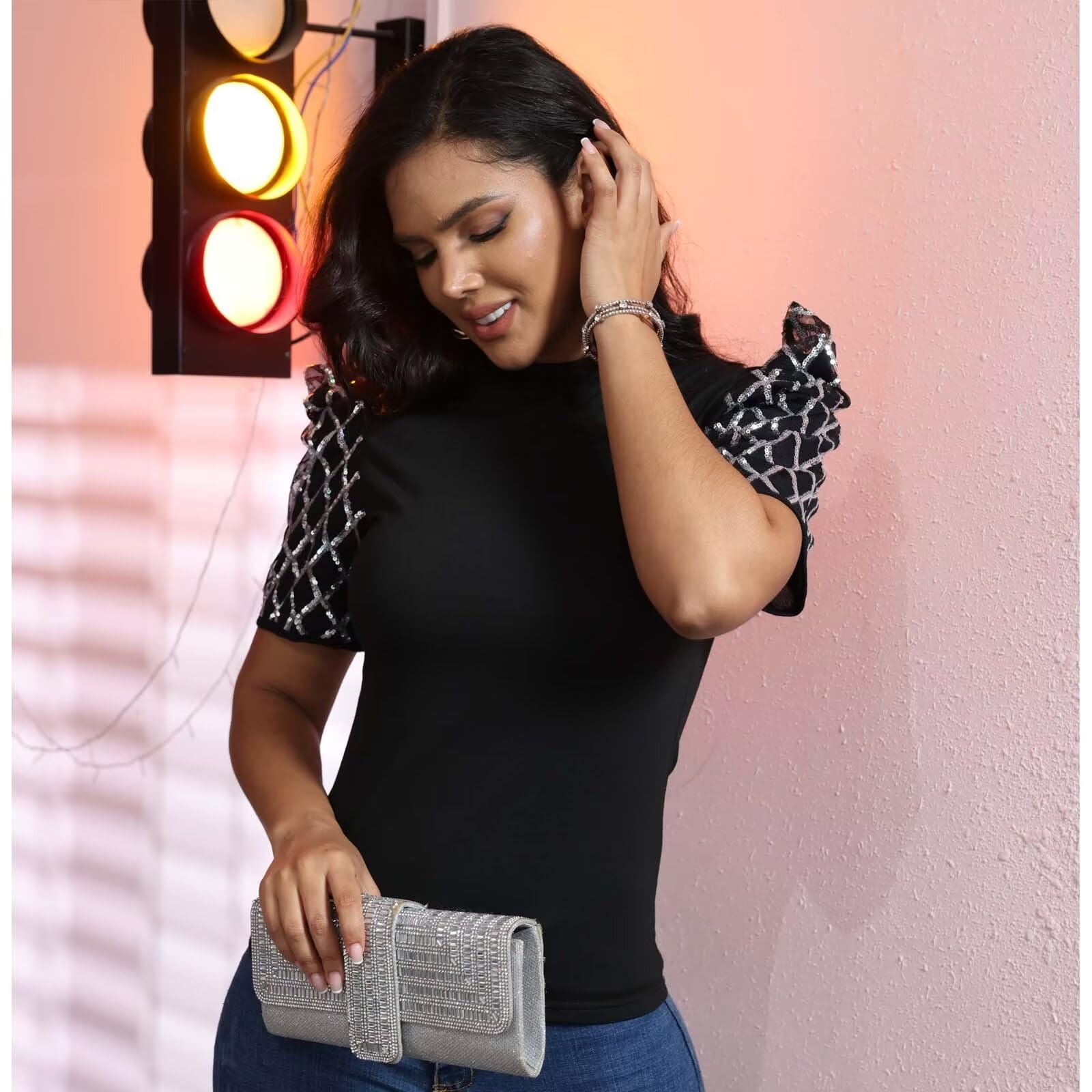 | Women Sparkle Short Sleeve Shirt | Black | Small | 3 |