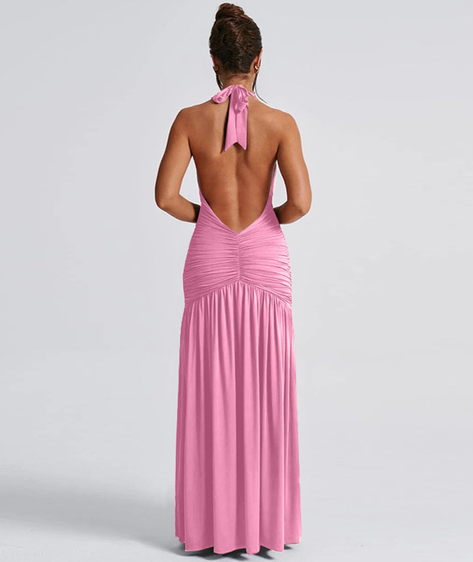 Sexy Halter Deep V Neck Maxi Dress Pink Large 3