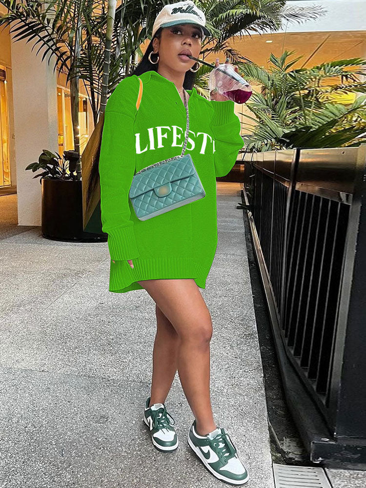 Long Sleeves Ribbed Knit Letter Print Sweaters
