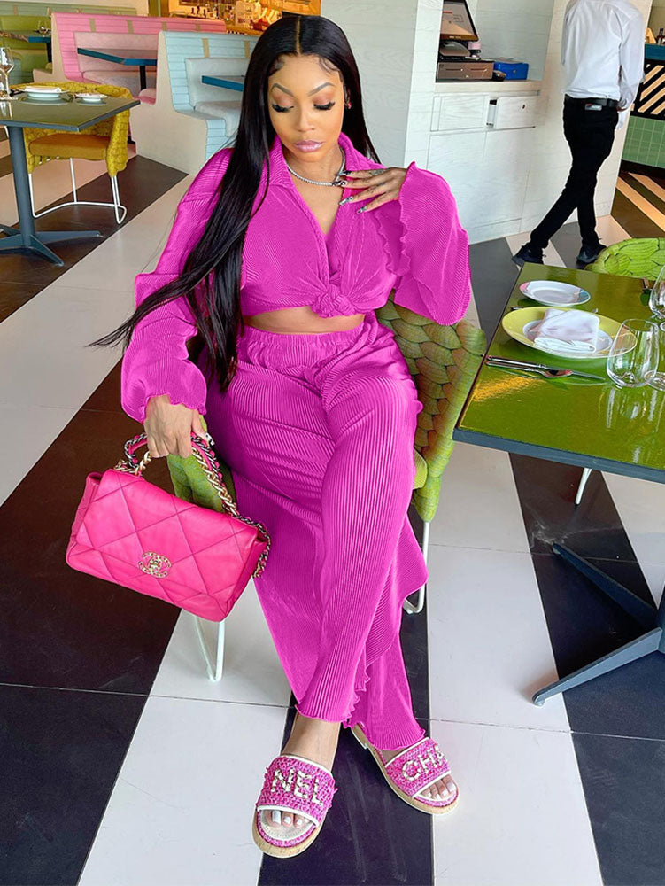 Two Piece Pleated Long Sleeve & Long Pants