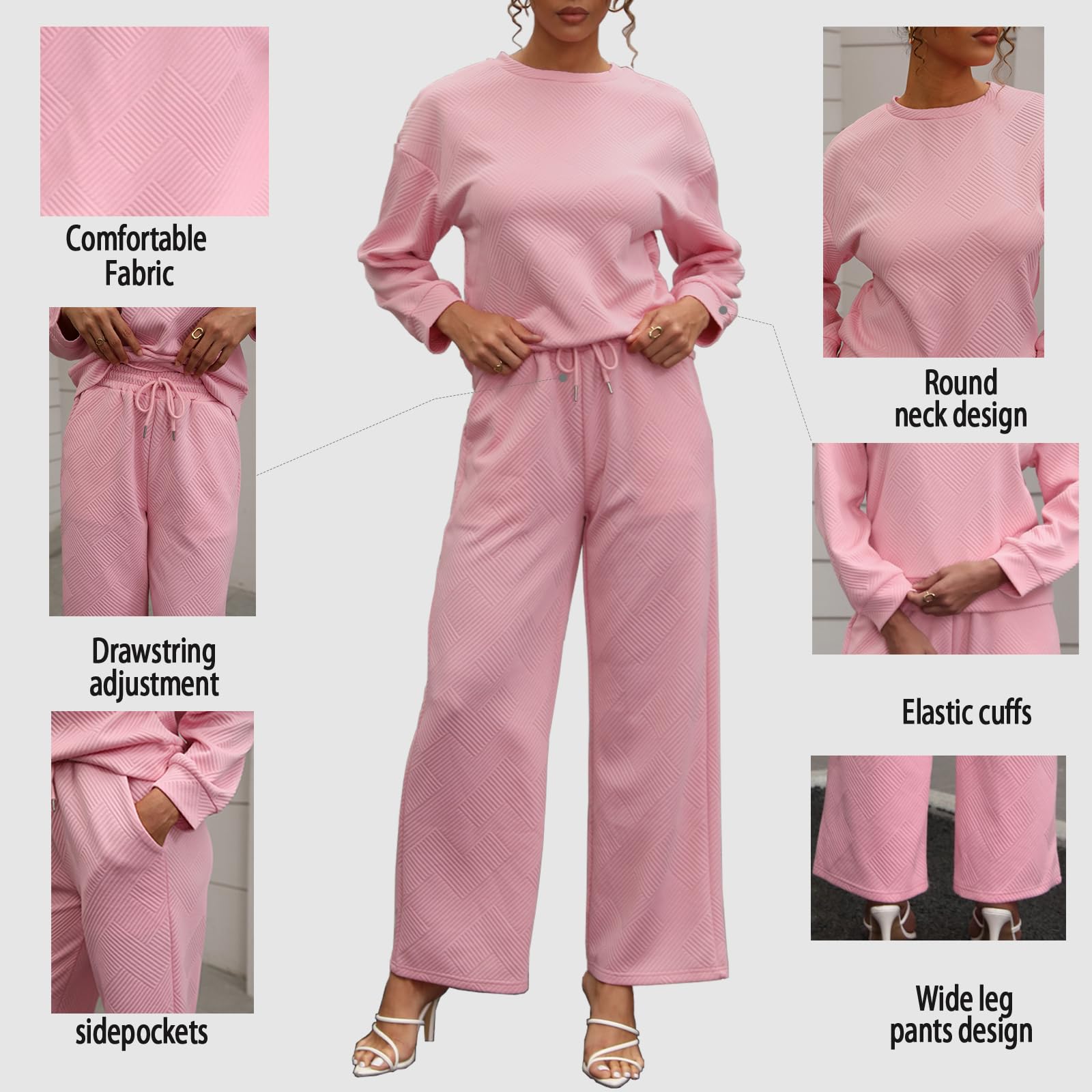 Womens 2 Piece Outfits Travel Pink Small 3
