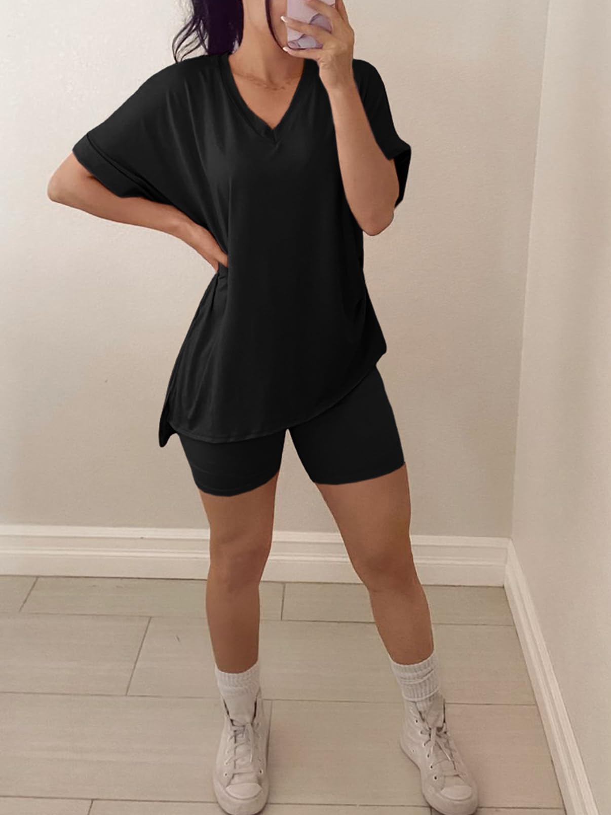 Matching Biker Shorts Set V Neck Blue X-Large 3