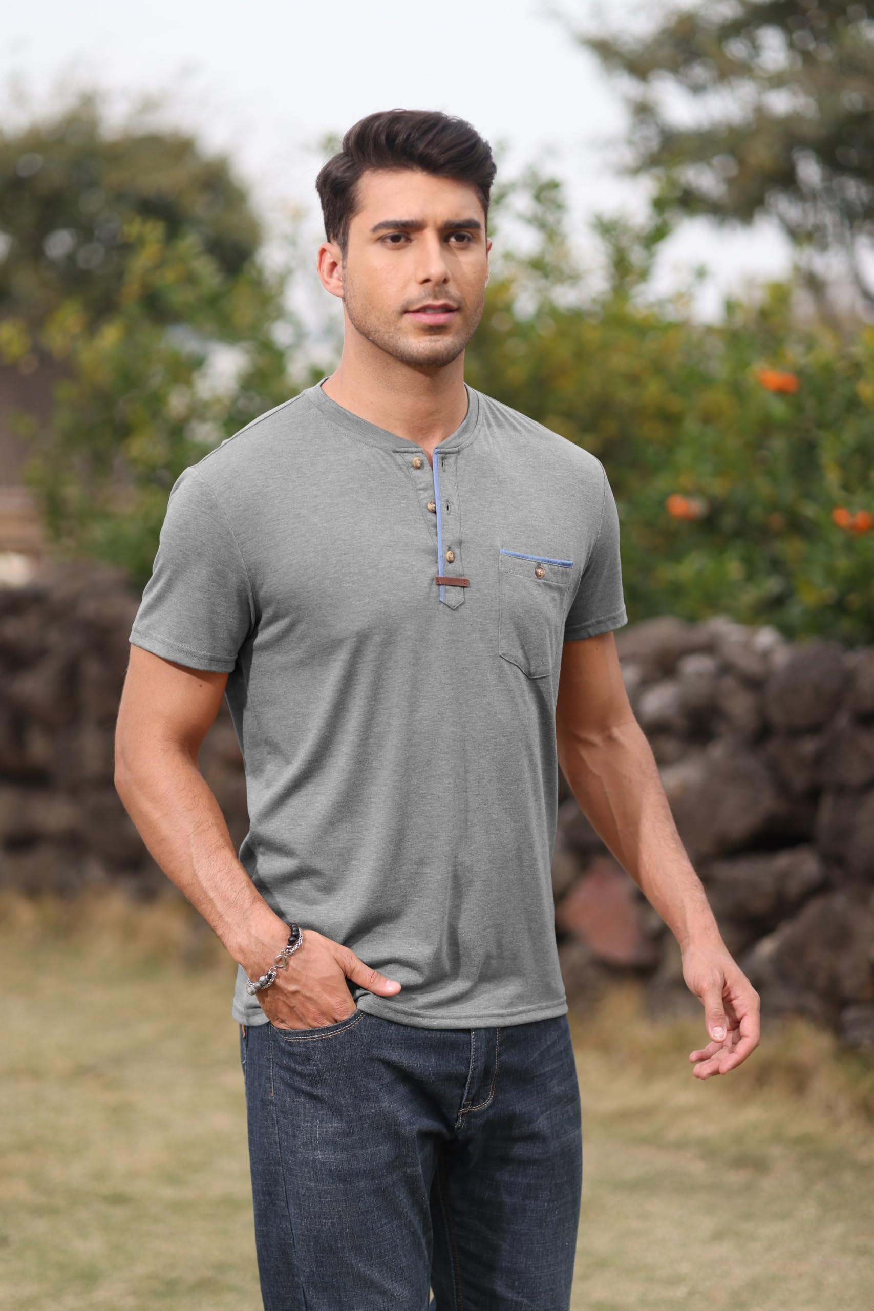 | Mens Henley Shirts | Grey | 3X-Large | 3 |