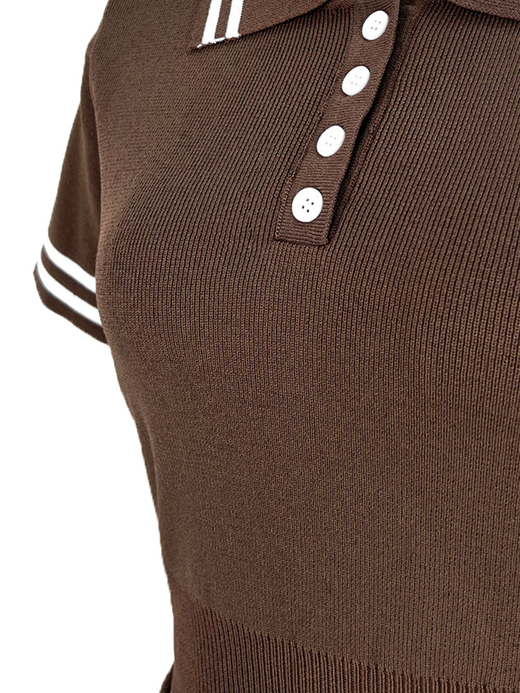 Stripe Knit Polo Crop Top Pleated Skirt Set