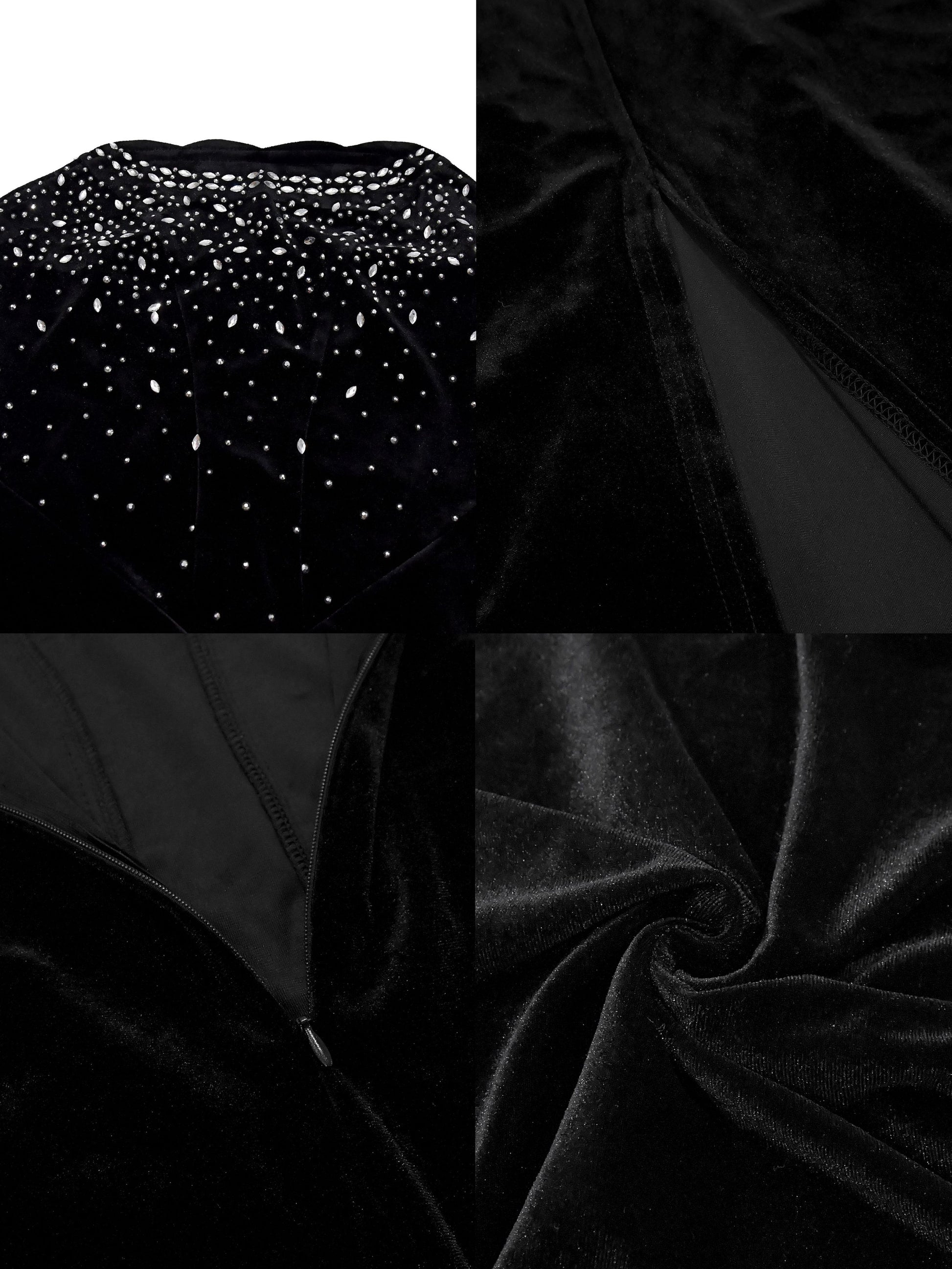 Off-Shoulder Slit Rhinestone Bodycon Dress