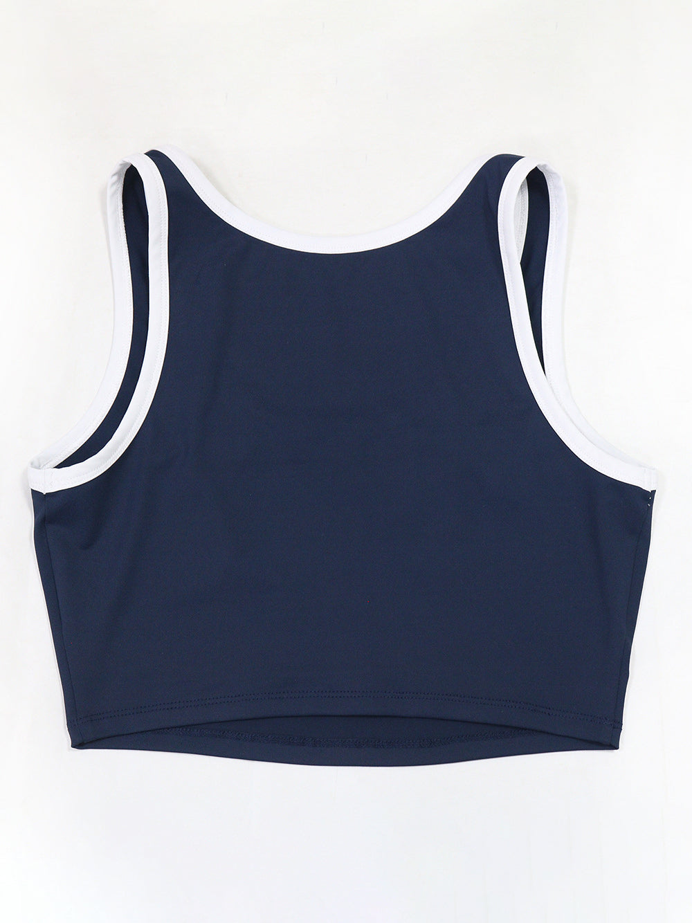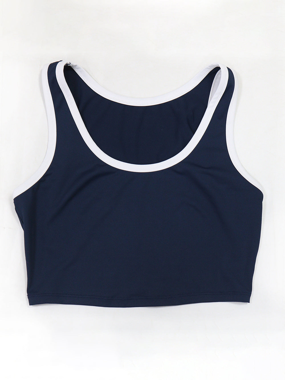 Two-Piece Contrast Trim Crop Top Skirt Shorts Set
