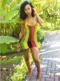 Halter Neck Straps Rainbow Hollow Out Fishnet Mini Dress
