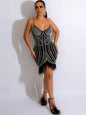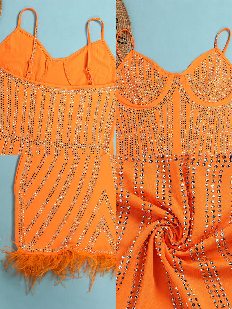 Spaghetti Strap Rhinestone Feather Mini Dress