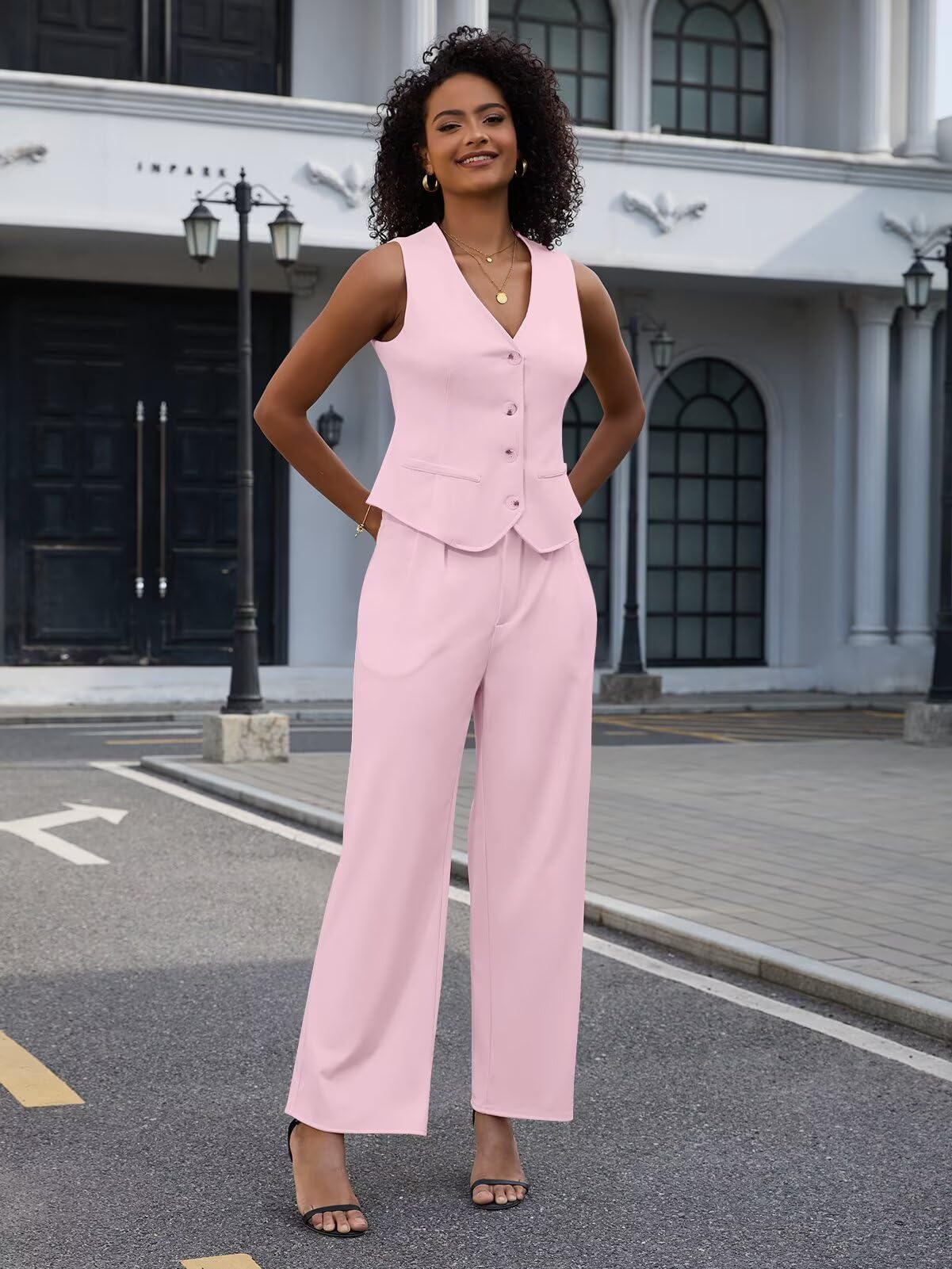 Women's 2 Piece Pant Suits 3011-pink Medium 1