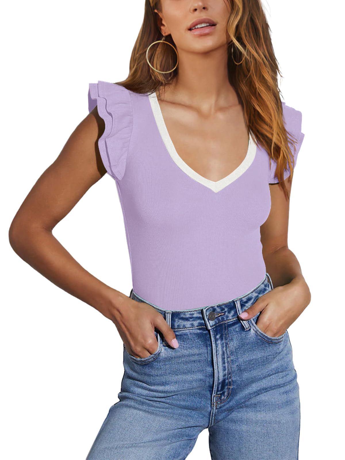 Womens Summer Tops Ruffle Shirts Light Purple Medium 15