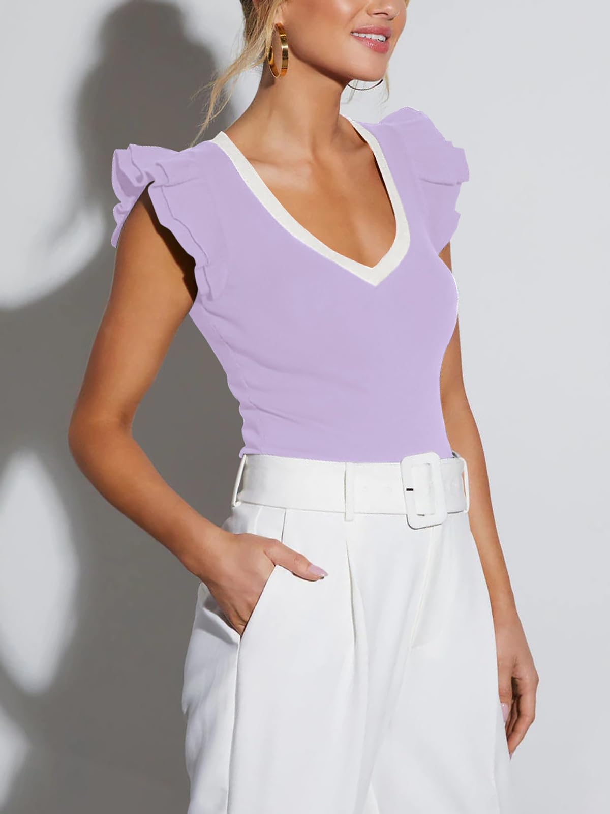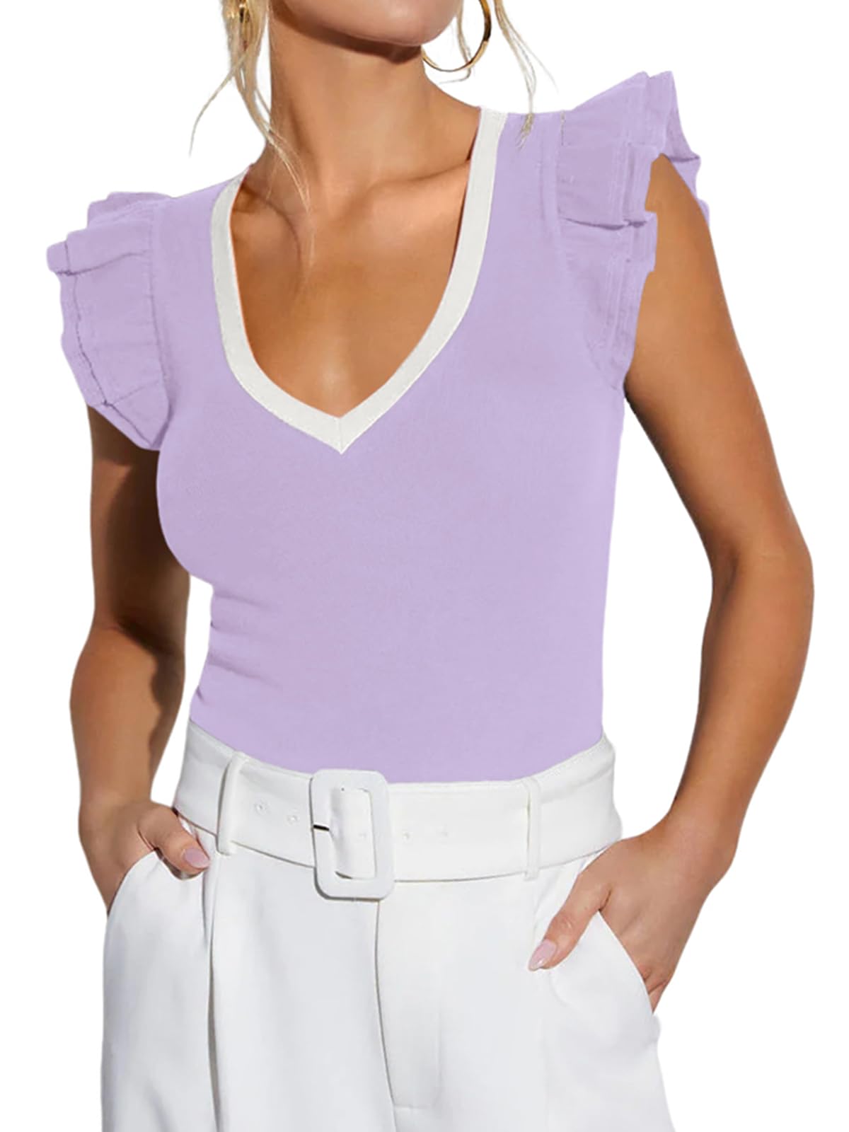 Womens Summer Tops Ruffle Shirts Light Purple X-Large 10